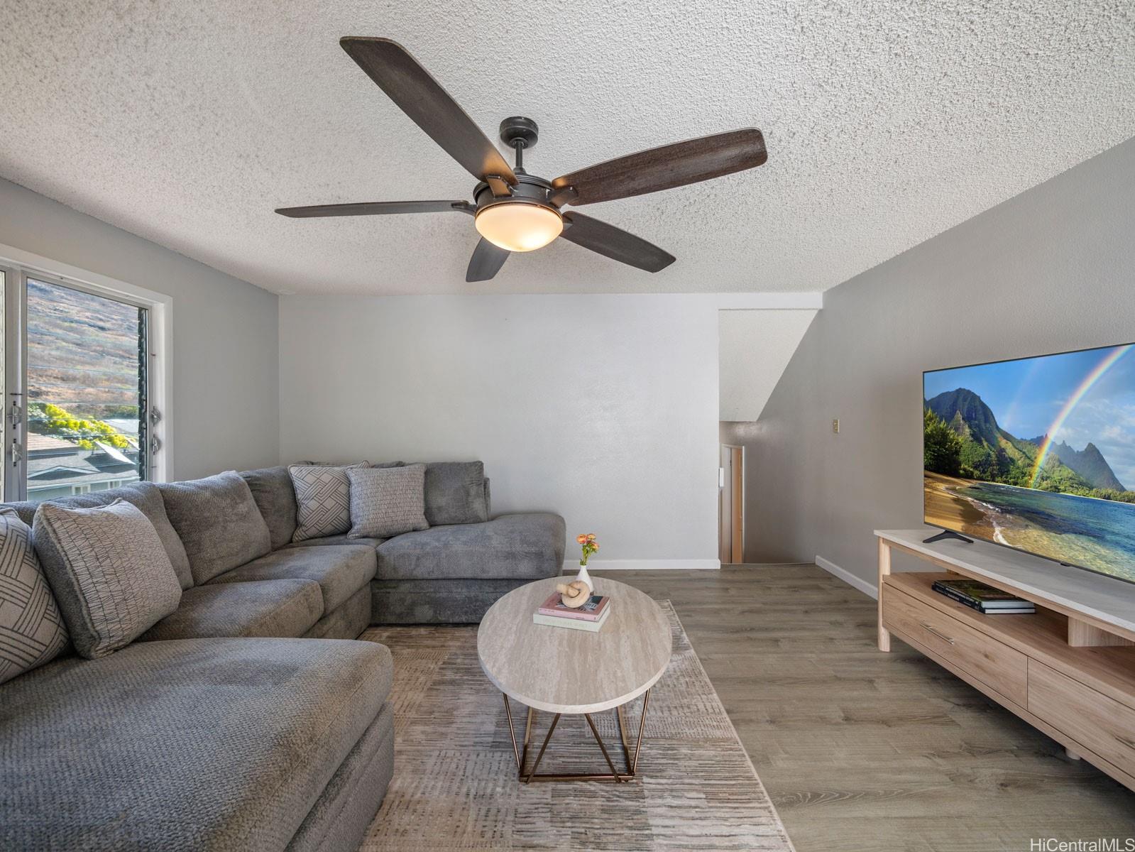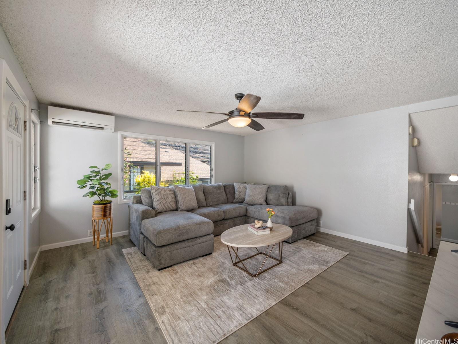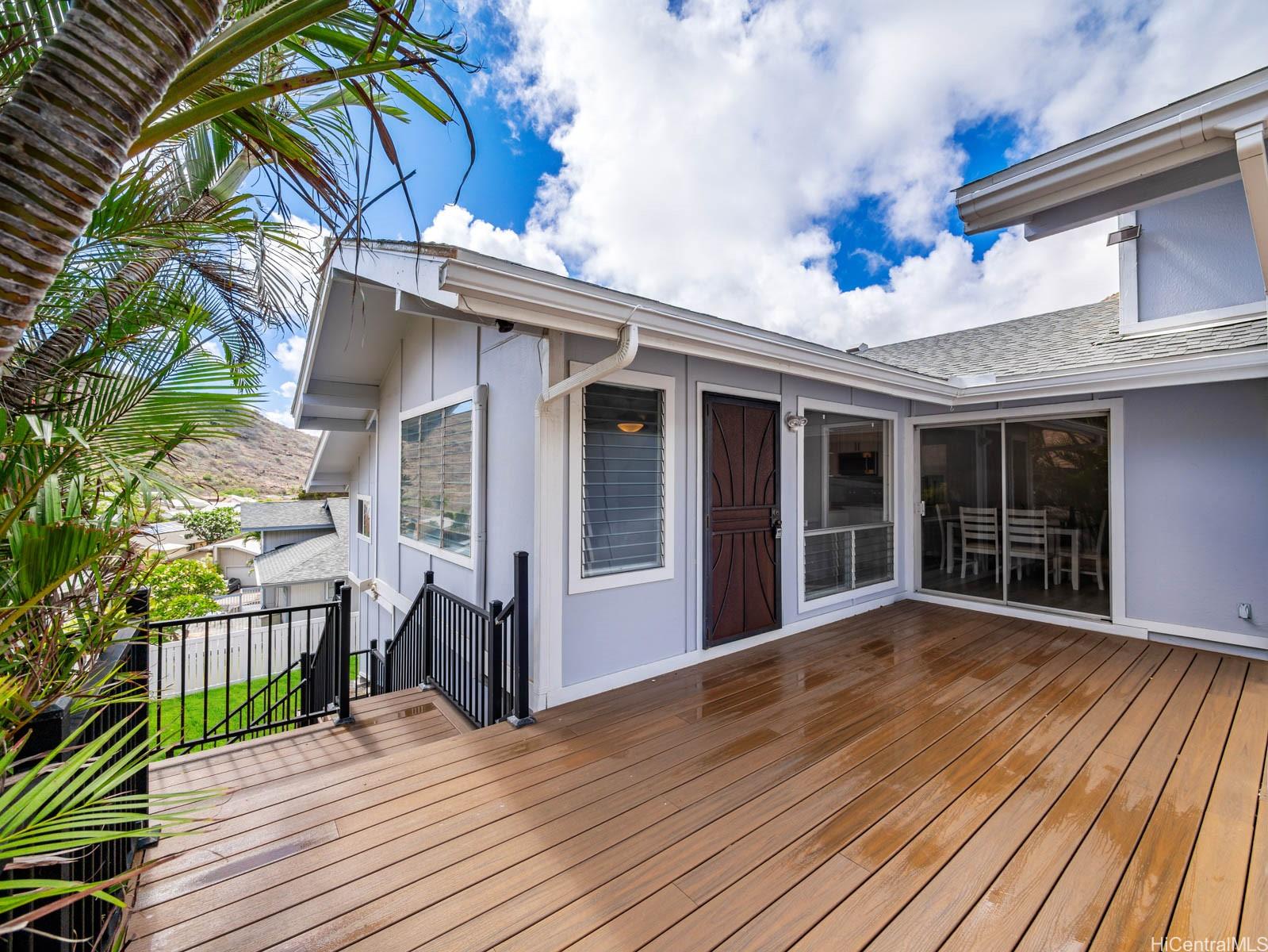 [0] => Welcome to this beautifully updated single-level 3-bedroom, 2-bath home in the desirable Kalama Valley neighborhood of Hawaii Kai. This modern residence features a spacious open floor plan with luxury vinyl plank flooring throughout and a fully renovated kitchen complete with quartz countertops, stainless steel appliances, and sleek cabinetry. Enjoy seamless indoor-outdoor living with a large fenced-in yard, lush grass, a private Trex deck perfect for entertaining, and a vinyl privacy fence for added comfort. The home also offers split A/C, updated bathrooms, and thoughtful finishes throughout. Ideally located just minutes away from renowned Sandy Beach, Koko Head Crater, Kalama Valley Park, and top-rated schools. With easy access to hiking trails, shopping, dining, and the convenience of Hawaii Kai. First Open House Sunday, October 19th, 2-5 pm.