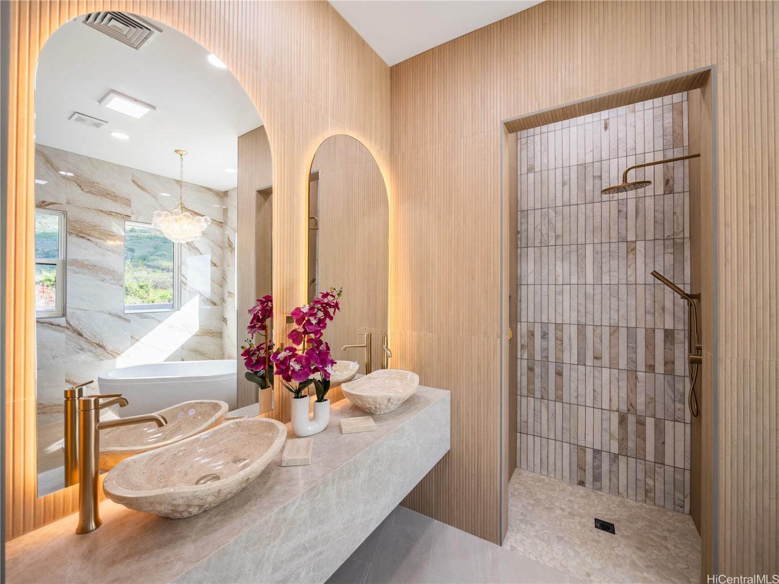 Nestled within the prestigious gated community of Maunaolu Estates, this exceptional island retreat offers a rare blend of modern elegance and natural Hawaiian beauty. Spanning over one acre of lush, landscaped grounds, this single level 4-bedroom, 4-bathroom estate is designed for effortless indoor-outdoor living and grand entertaining. Inside, nearly 3,500 sq. ft. of refined space showcases high ceilings, oversized windows, and sliding doors that fill the home with natural light and frame breathtaking mountain and ocean views. The chef’s kitchen features new Café appliances, custom cabinetry, and a handcrafted dining table for twelve — perfect for gatherings large or intimate. The primary suite offers a serene sanctuary with a spa-inspired bath, while a spiral staircase leads to a loft with wet bar and wine fridge — ideal for relaxing or entertaining. Outdoors, enjoy a custom waterfall, lush landscaping, and a resort-style pool with water slide and spa. The 900+ sq. ft. 3-car garage with double-sided doors blends function and luxury — embodying the ultimate Hawai‘i lifestyle. Listing by: Real Broker (808) 551-1812