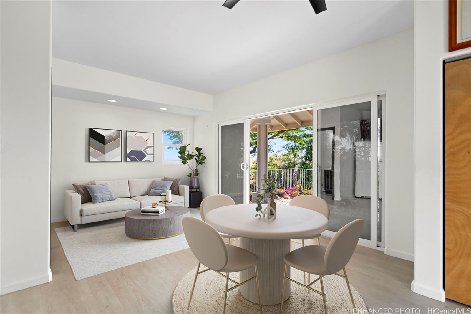 string(996) "Welcome to Mauna'olu Estates! Experience indoor-outdoor island living in this beautifully appointed single-level 3-bed, 2-bath home with detached studio and full bath, located in a gated community with 24-hour security. Soaring ceilings and huge sliding doors frame mountain and ocean views throughout the expansive open-concept living area, anchored by a huge kitchen island, custom cabinetry, and quality appliances. Both the living room and spacious primary suite open to a wraparound lanai—perfect for relaxing or entertaining. The primary suite features a custom koa wood closet, dual vanities, jetted tub, and walk-in shower. Below the main home is a vast unfinished area offering potential for recreation, gatherings, or future expansion. Enjoy sustainable living with 24 owned PV panels, a two-car carport, and a large driveway with room for additional vehicles or a boat. Terraced landscaping with succulents and low-maintenance plants create an oasis in this private hillside setting."