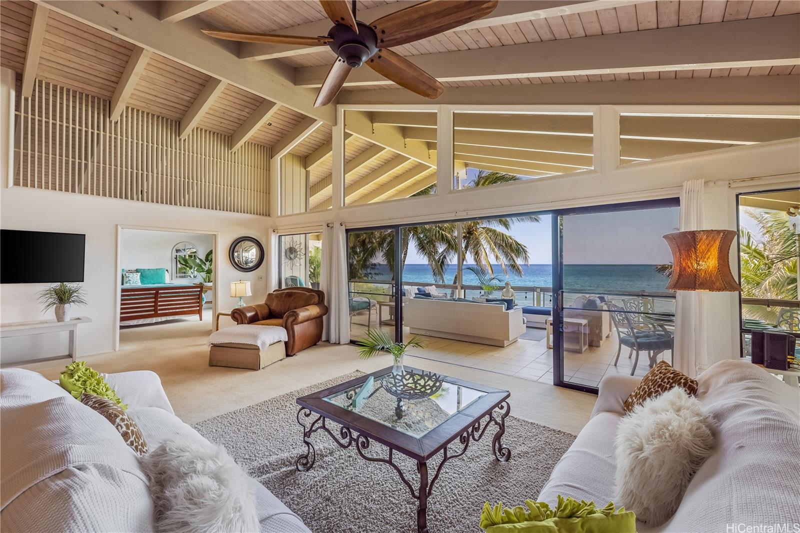 [0] => Isn’t it time you made the move you’ve been dreaming of? This spacious OCEANFRONT home, located in the last beach loop on the scenic and sunny west coast of Oahu, sits on over ¼ acre in the coveted Makau Beach Loop, a neighborhood right next to world-famous Makaha Beach. Often used for meditative retreats, the home has vaulted ceilings, two generous primary suites, and a massive wrap-around lanai with front-row seats to year-round sunsets, whales, and dolphins. The 2,069 sq ft upstairs living space also includes a grand kitchen and living area, all with stunning ocean views. Downstairs, large picture windows and sliding doors open to a generous ocean-facing patio—perfect for parties, BBQs, or hammock time. A natural reef, state-approved seawall, gated rock wall, and lush landscaping offer comfort and solitude. This is a legacy home—ideal for your vacation getaway, long-term investment, or full-time residence for years to come. Priced to accommodate renovations or personal touches to suit your taste and lifestyle.