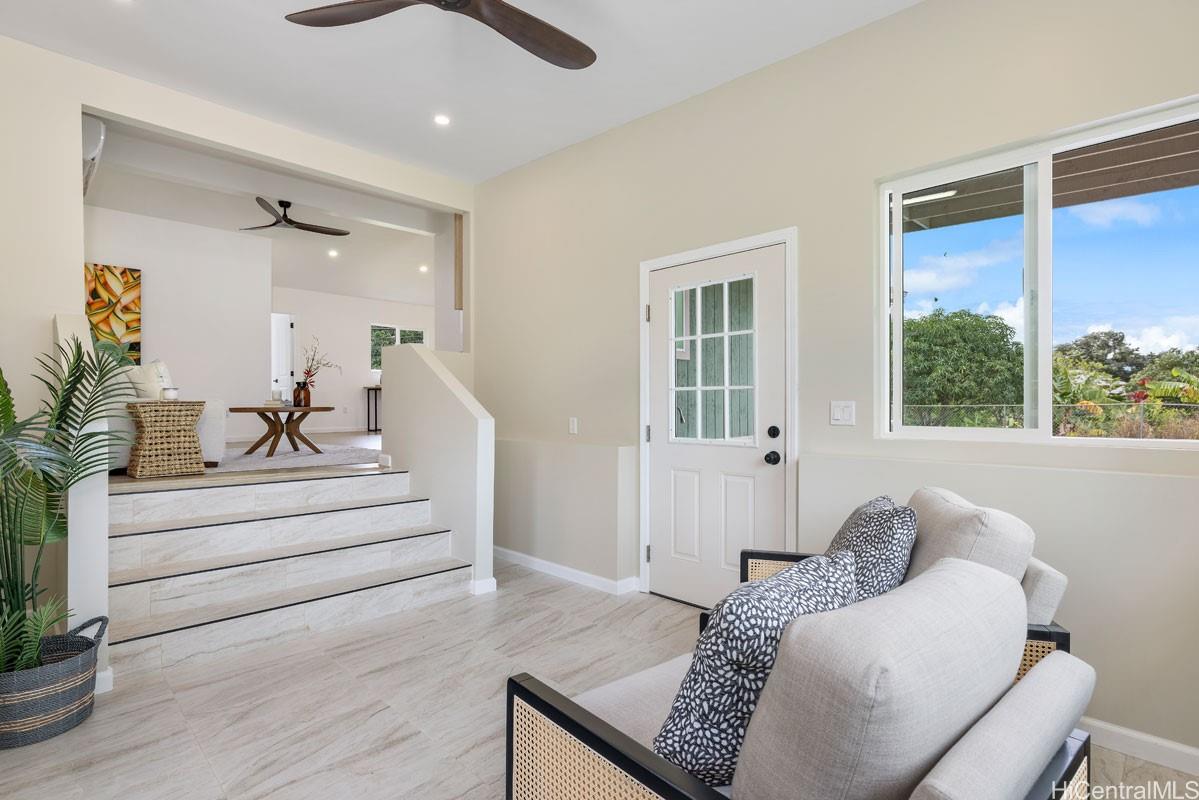 This spacious 1 acre property boasts custom landscaping, a mature mango tree, new grass in front and back yard, irrigation, a large separate garage and lots of farmable land, while being fully fenced with a custom electric gate. Step inside to discover an open living space with abundant natural light that fills every room to showcase the contemporary finishes while blending island-inspired elegance and modern comforts. Attention to detail and pride in this newly built home is refreshing. Listing by: Corcoran Pacific Properties (808) 222-0323