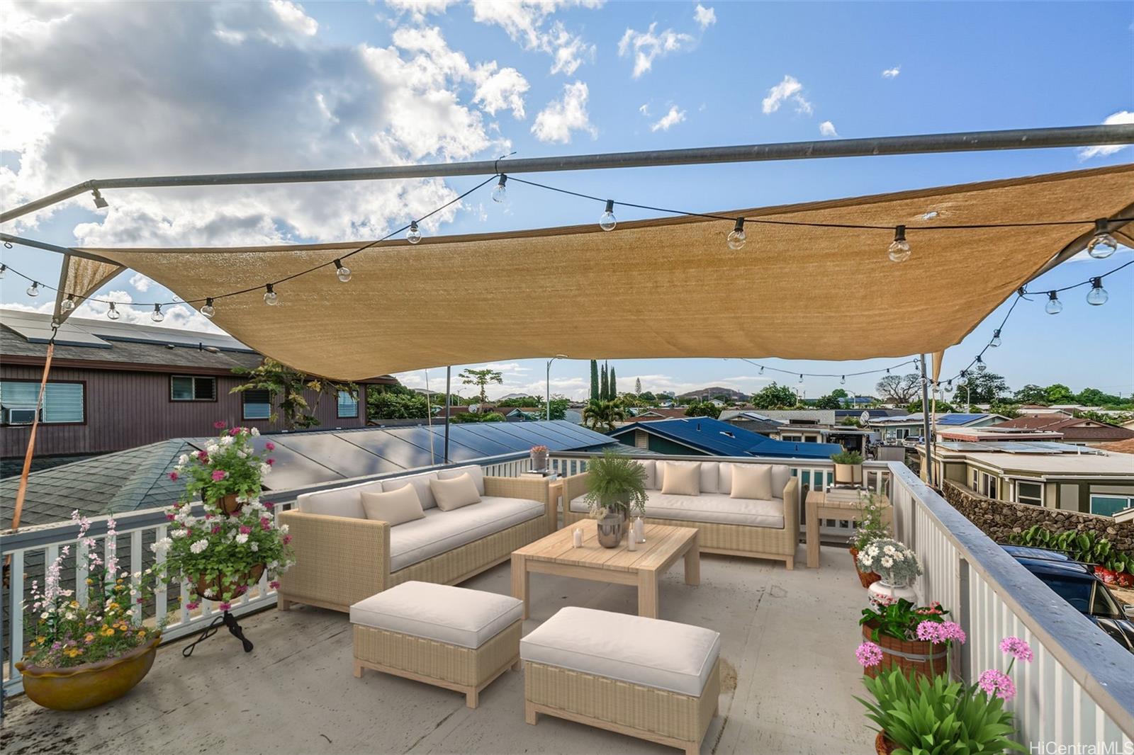 Don’t miss this opportunity to own the perfect entry-level home in Makaha! This one checks all the boxes: 3 beds, 2.5 baths, window AC units throughout, to keep you cool and comfortable year-round. Tasteful upgrades, with luxury vinyl plank flooring, modernly renovated bathrooms with a bathtub and a shower stall option. Two large bedrooms offering ultimate comfort, one being the primary bedroom with a full bathroom, the other with a private half bathroom. Step outside to the ideal-sized backyard, framed by lush greenery for everyday relaxation. Enjoy the spacious sun deck, perfect for stargazing or rooftop BBQs with family and friends. This home also comes equipped with LEASED SOLAR PANELS, giving you stability and peace of mind when it comes to your monthly electric expense, approximately $310.00 per month. When searching for an entry-level home, the “must-haves” usually stop at affordability and comfortable interior space. Here, you get so much more! Come see this gem today and secure your place in Makaha for years to come!