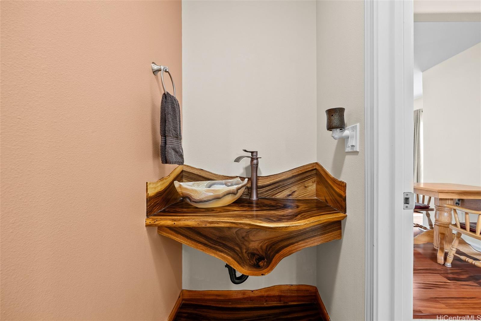 [0] => RARE Custom 3 bed 2.5 bath home loaded w/ upgrades in the gated Makaha Oceanview Estates. No side neighbor w/ exquisite ocean & mountain views. Enter through double doors to a travertine foyer & new tigerwood flooring throughout the main living areas. Open concept living & dining flow into a gourmet kitchen w/ granite countertops & stainless steel appliances. Main level features a spacious primary suite w/ ensuite bath & extra large walk in closet. Marble flooring in all bathrooms. The half bath features a custom mango wood vanity w/ onyx sink. Upstairs retreat to a bonus living room w/ lanai & ocean views, plus built in bar/vanity. Custom oversized second primary suite w/ expansive walk in closet & ensuite bath. Third bedroom upstairs w/ mountain views. Landscaped backyard features large covered lanai, new hot tub, bar, water fountain, outdoor shower, fruit trees ( apple banana,orange, avocado), lighting & sprinkler system. Additional features: owned solar panels, new central AC, attic solar fan, plantation shutters, & deep two-car garage w/ laundry. This is a rare opportunity to own a custom, upgraded residence in one of Makaha’s most desirable gated communities.