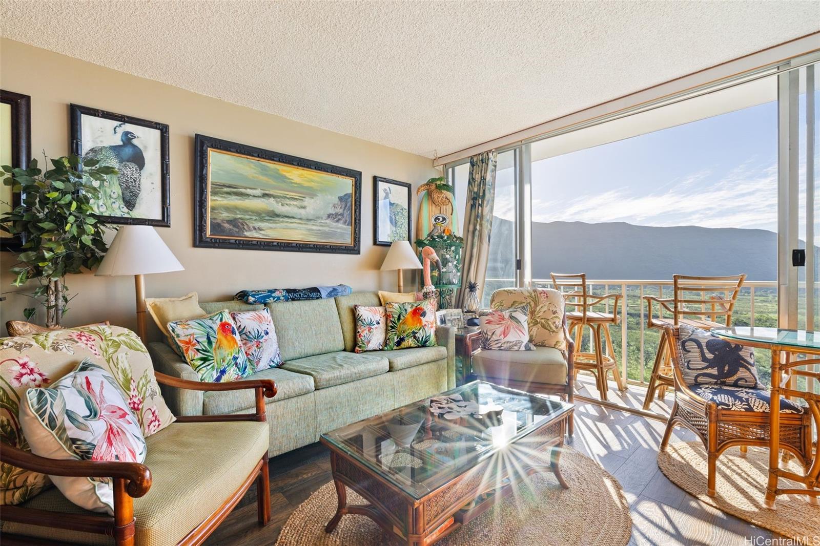 string(1158) "RARE 3.625% VA ASSUMABLE LOAN OPPORTUNITY!! Enjoy resort-style living in the gated community of Makaha Valley Towers. Located in the peaceful Makaha near stunning beaches and scenic hiking trails, this spacious 1-bedroom, 1-bath, 1-parking condo offers sweeping ocean and mountain views in a serene setting. From the moment you enter, floor-to-ceiling glass doors showcase panoramic ocean views and flood the home with natural light. The primary bedroom includes a flexible bonus space, ideal for an office area. Updated wood laminate flooring (2022) and a secure entry storage closet add comfort and convenience for island living. Residents enjoy a heated pool, BBQ area, community laundry on every floor, gated entrance and nearby ample guest parking. Maintenance fees include electricity, AC, water, sewer, basic internet, cable and 24-hour security, offering exceptional value and peace of mind. All furnishings are included at the buyer's option, making this a truly move-in ready opportunity. 3.625% VA loan assumption available to veteran buyer with full price offer (PITI $1,264.08, HOA $1,210.55, Loan Balance $198,865). Buyer to verify and qualify."