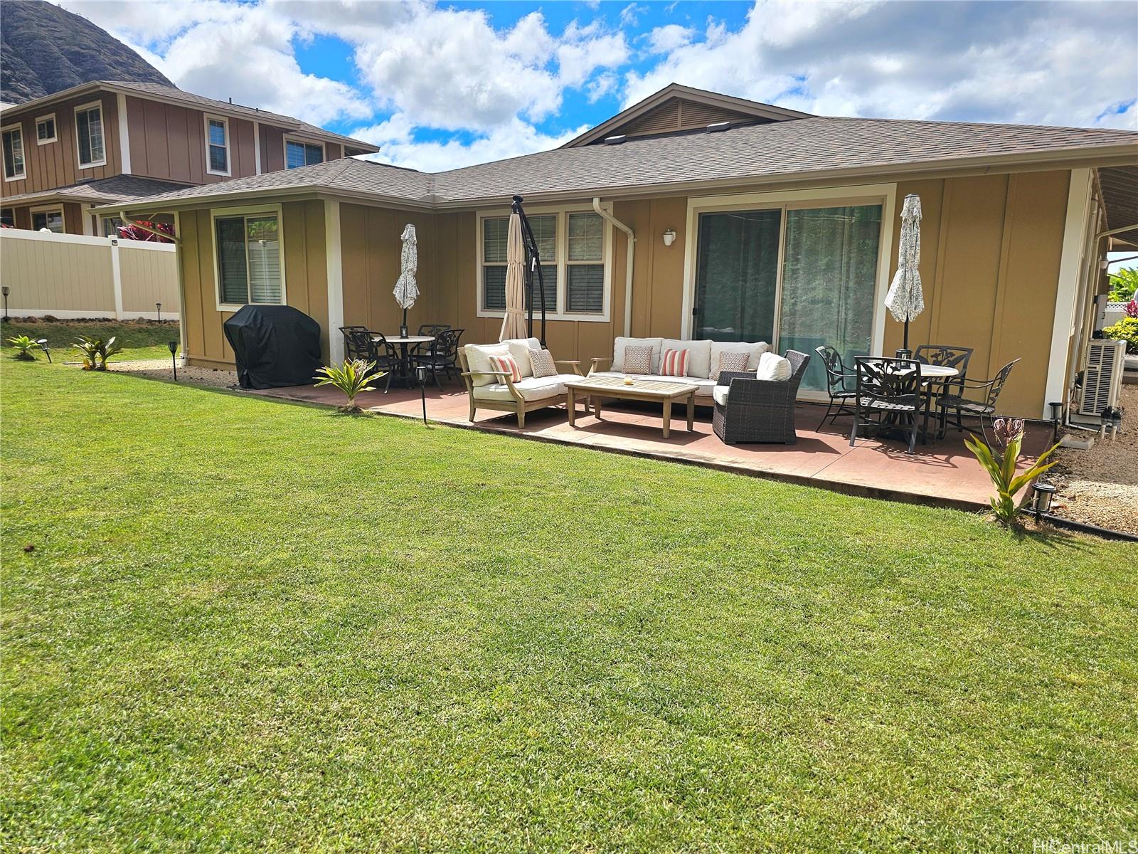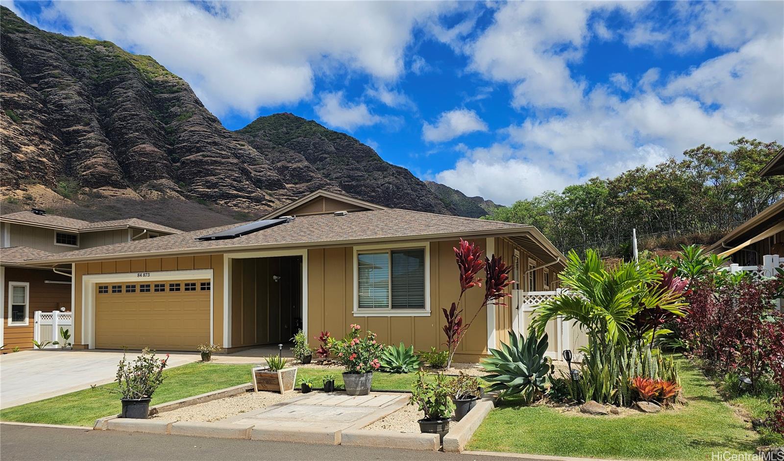 Price Improvement 50K reduced! Investor Alert LEGAL STR ACTIVE AIRBNB -Beautiful Legal Short-Term Rental – Turnkey Investment Opportunity comes fully furnished. Welcome to The Cottages at Mauna‘Olu, one of O‘ahu’s rare gated, resort-zoned communities legal STR. This largest one-story home features: PRIVACY-NO REAR NEGHBORS 3/2 popular floor Plan 3 (Waikohola) layout with open-concept with extra-large living room, 9-ft ceilings, split A/C, ceiling fans,2-car garage with a 3-car driveway. The modern kitchen includes a large island as breakfast bar, - stainless-steel appliances, spacious pantry. The primary suite offers an oversized walk-in closet and ensuite with modern glass-enclosed walk-in shower. Second bath features upgraded tub/shower combo with glass enclosure. Large, landscaped lot -~7,800 SF with no rear neighbors, offering privacy and majestic mountain views w/ ~350 SF of lanai. Currently an Airbnb with strong rental history and sold fully furnished and ready to generate income from day one. Comm. amenities include pool, gym, & rec center. Minutes from Makaha Beach, golf, & KoOlina. Perfect for investors seeking cash flow or a luxurious island getaway. Much more to see ... Listing by: Corporate America Investment (808) 295-8283
