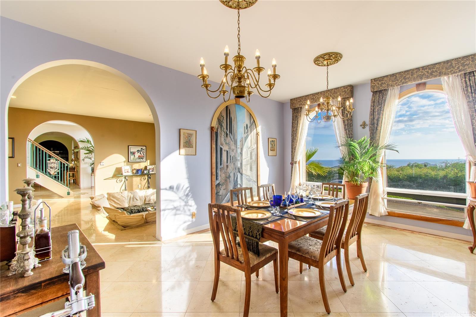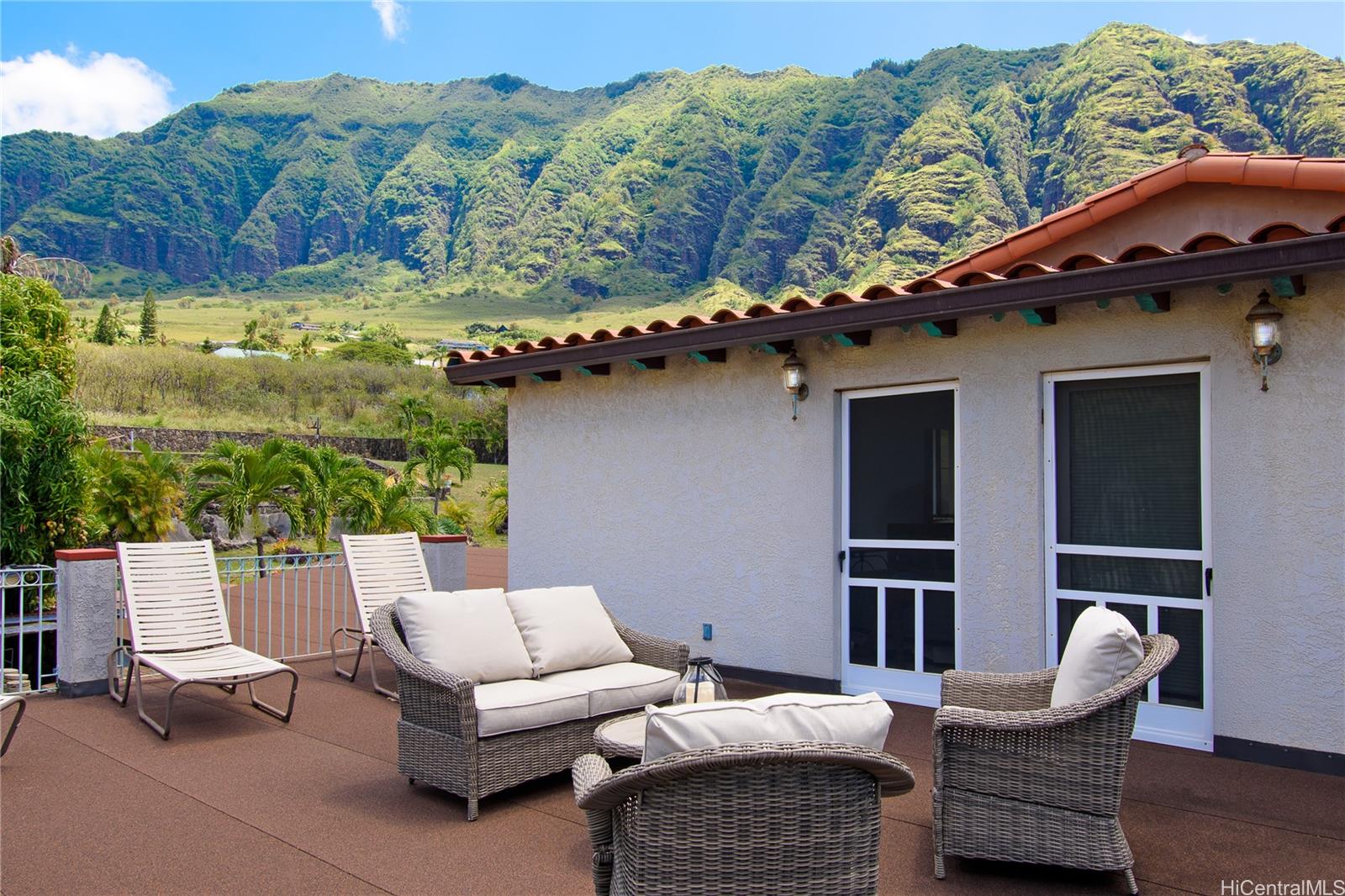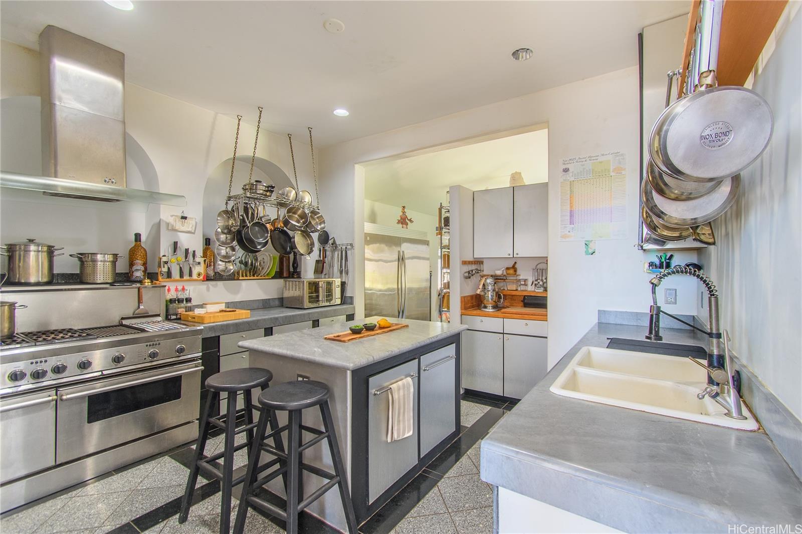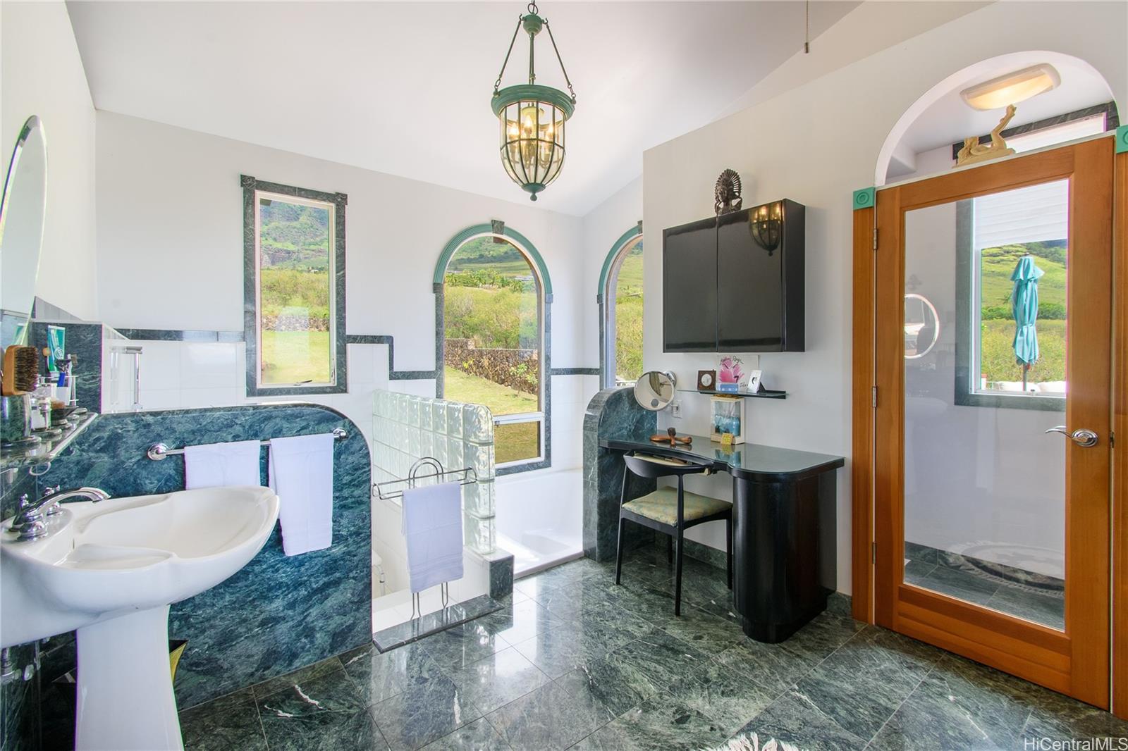 [0] => SELLER FINANCING AVAILABLE! This exceptional estate, built and owned by its original visionary, is a true testament to timeless elegance and inspired design. Featuring 6 spacious bedrooms, 4 full baths, and a powder room, every detail reflects luxury and sophistication. Solid maple, marble, and granite flooring throughout. Located in a gated community with 24-hour security. The first floor includes a theater, billiards room, library, sunken living room, formal koa wood dining, gourmet kitchen, pantry, wine room, and storage. A 540 sqft maid’s quarter offers a half kitchen, full bath, private patio, and separate entrance. Theater features a 130" screen, LED projection, and Definitive Technology sound. The chef's kitchen flows into a courtyard with BBQ—ideal for entertaining. Upstairs, the 900sq ft grand suite includes an exercise room, jacuzzi, oversized shower, and 620 sq ft Lanai. Unobstructed panoramic ocean view of framed  mountains down to famous Makaha surfer's beach. Set on a lush, one-acre lot, this estate is an enclosed compound with 6-ft Hawaiian rock walls, overlooking Makaha Golf Course. License/Registration is required to enter the gate.
