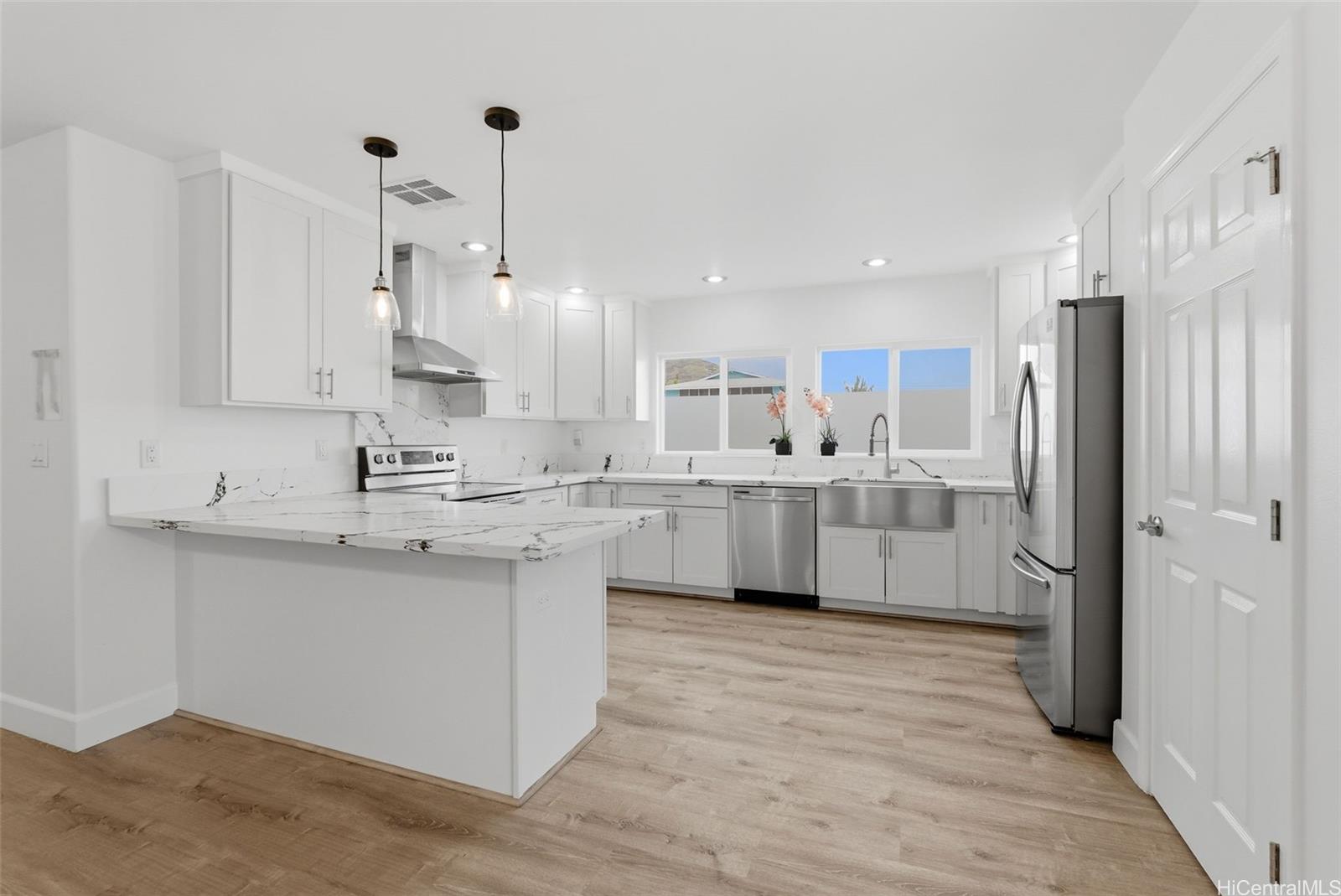 *PRICED TO SELL AT $231,000 BELOW ORIGINAL PURCHASE PRICE*CHECK OUT 360 VR TOUR* Across from world-renowned Pokai Bay lies this custom new construction home with modern luxe finishes perfect for multigenerational living or investors looking for a great rental opportunity. With 2 separate entrances, this property can be used as single family or multiple, with the ground floor having a full living room, kitchen, and primary bedroom w/ensuite full bathroom, and the upstairs having it's own entrance leading to a second full living room, second kitchen (wet bar), and four more bedrooms upstairs (one of which is a second primary bedroom w/ensuite full bathroom). Enjoy sweet, soothing breezes blowing in from the nearby ocean while you take in gorgeous views of Pokai Bay, a picturesque beach park known for epic surfing, great fishing, world-class swimming & snorkeling, dreamy sunsets, a lifeguard tower, and so much more! Discover plenty of local adventures, shops & eateries, or take a scenic 20 minute oceanfront drive to the spectacular Ko'Olina Resort & 2nd city of Kapolei to enjoy golfing, malls, dining and everything else Oahu's breathtaking west side has to offer! See it TODAY! Listing by: Compass (808) 228-8065