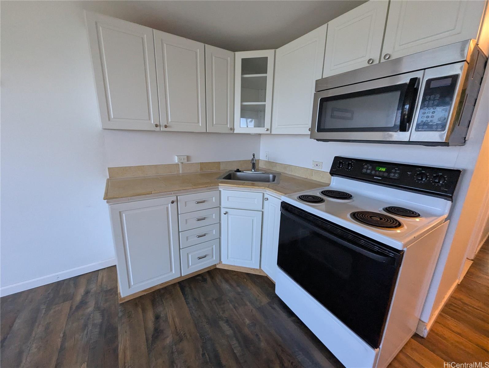 [0] => Resort living! This 2nd floor, 1 bedroom unit in the Makaha Surfside has been updated with vinyl plank flooring, newer kitchen cabinets, stone tile counter, and pedestal and glass bowl double sinks in the bathroom. The unit is in the A building and the large sliding glass doors open up to the beach, providing an unobstructed ocean view, steps from the beach access in the community fence. A building is also next to 1 of the 2 swimming pools in the complex, which also features an exercise room and male/female saunas. This secured building is close to restaurants, Longs/CVS, the highway, and historic Pokai Bay! Schedule your showing today!