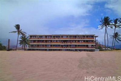 Very hard to find a fee simple condo on the beach on Oahu at this price. Rarely available, located on the picturesque shores of Pokai Bay, this studio offers 290 sq. ft. of living space, boasting breathtaking views of the Waianae Mountain range and cool breezes flowing through. This is an outstanding opportunity to renovate your way and createa beautiful island living space right on the beach with low maintenance fees, making it an ideal choice for those looking to get away from it all, or for a second home in hawaii. Dont miss this chance to owna piece of paradise. Located in the middle of Waianae town , 0.4 miles or walking distance to The beach House resturant in the Army Rest Camp for great food, music, sunset views and swimming and other activities.