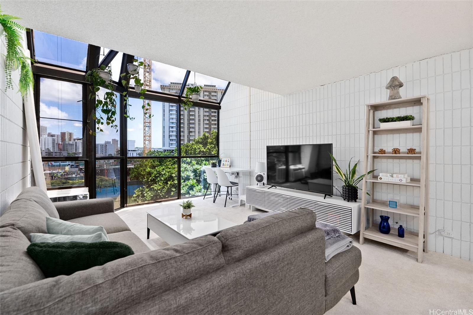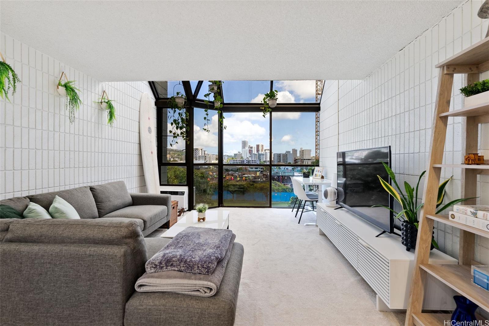 Step into style and comfort at Crystal Park #508, a beautifully updated and rarely available penthouse unit in the vibrant Moiliili neighborhood. This thoughtfully renovated and spacious 1-bed, 1-bath condo features 9 foot+ floor-to-ceiling windows that fill the space with natural light and highlight the open, airy layout. The kitchen, fully updated in 2021, boasts sleek quartz countertops, stainless steel appliances, and ample cabinet space—perfect for home cooks and entertainers alike. Additional features include ACs for year-round comfort, a secured entry and elevator access, and a dedicated secured covered parking stall. Crystal Park is a pet-friendly building and is FULLY insured. Enjoy unbeatable convenience with easy access to UH, Waikiki, Waiola Shaved Ice, nearby shopping, dining, and parks. Listing by: REMAX Hawaii (808) 738-3600