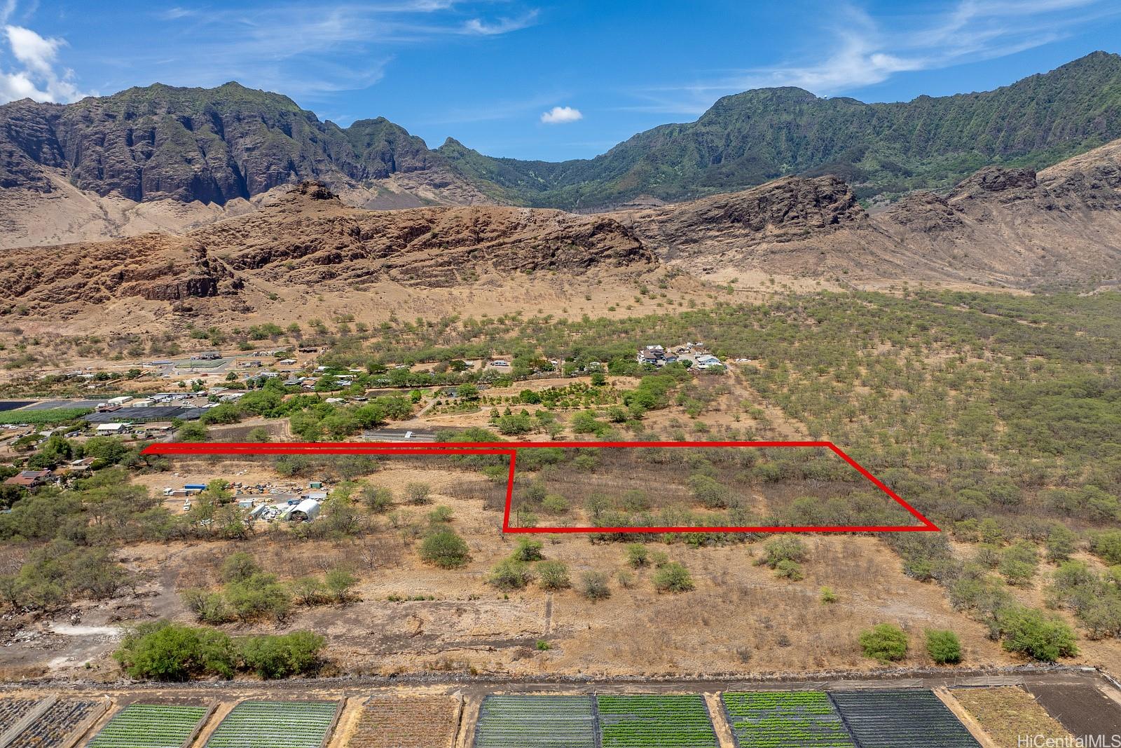 Very private, mostly level 5.995 acre AG-1 zoned lot is ready for building your dream farm compound. 40 foot wide access creates the possibility of a large two lane entrance road. Owner has paid the water meter fee & there is a capped well at the property. How will you use the dry stream on the Makaha back edge of the property? Could you use as a seasonal water source for a pond? The rear neighbor is the US Naval Reservation. Bring your dreams & plan how this parcel fulfill them. MLS photos show approximate lot boundaries, see survey posted in MLS documents for recent survey. Listing by: NextHome KU Realty (808) 398-3220