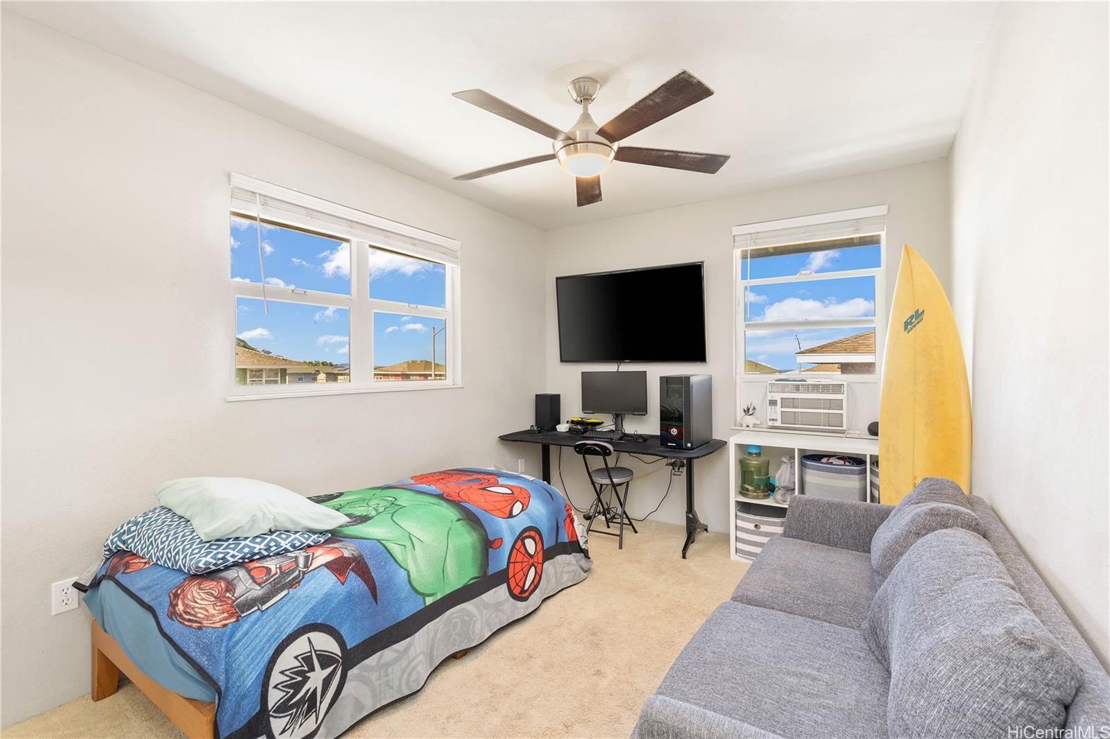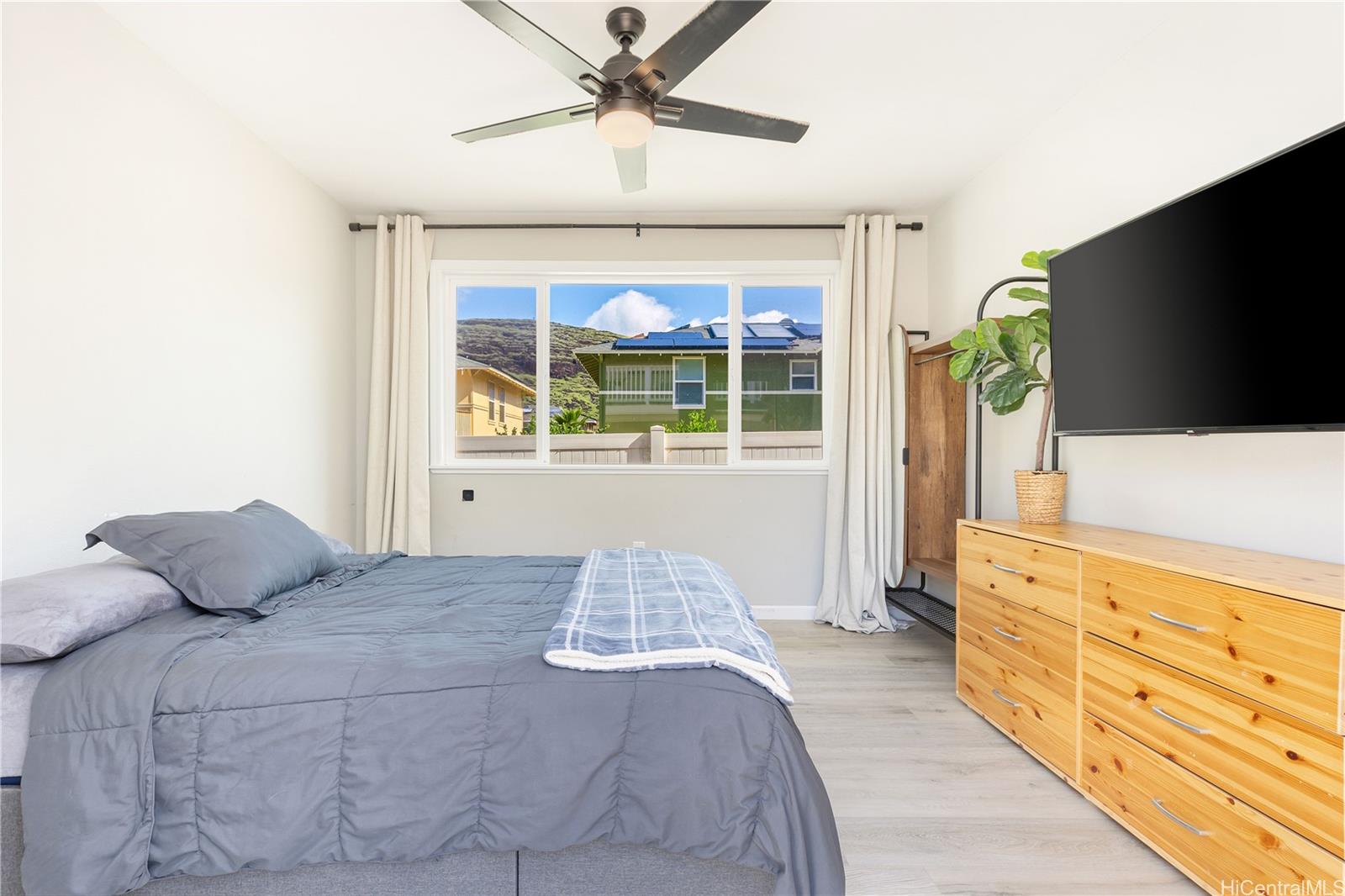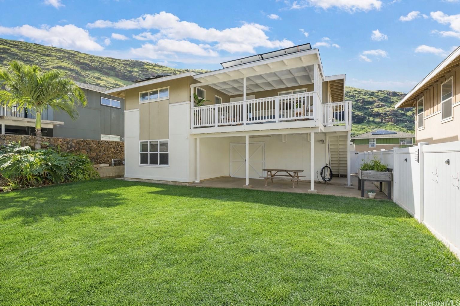 No HOA, 25 PV panels, 2 Tesla batteries, and a massive yard — all under $800K! Come see, and fall in love with this fully upgraded home before someone else locks it in! This beautifully upgraded 3-bedroom, 2.5-bath single-family home is located on a quiet street, and it features a 2-car garage with custom pass through to the backyard, extended driveway for additional parking, and a large fully fenced yard perfect for relaxing or entertaining. Enjoy energy savings with 25 leased PV panels and 2 Tesla batteries. Inside you'll find brand new laminate flooring, fresh interior and exterior paint, a new chandelier, and abundant natural light. The open kitchen includes granite countertops and stainless steel appliances. Upstairs, the primary suite offers a gorgeous stand-up shower and upgraded walk-in closet. This unique, one-of-a-kind home includes a custom-built, covered balcony with interior and exterior access, covered patio, detached bonus rec room, and ample storage throughout. Minutes to schools, shopping, dining, and the beach. Rare find under $800K! Call your favorite local Realtor to schedule a private showing today. NO OPEN HOUSES - private showings to Preapproved Buyers only! Listing by: eXp Realty (808) 312-7556