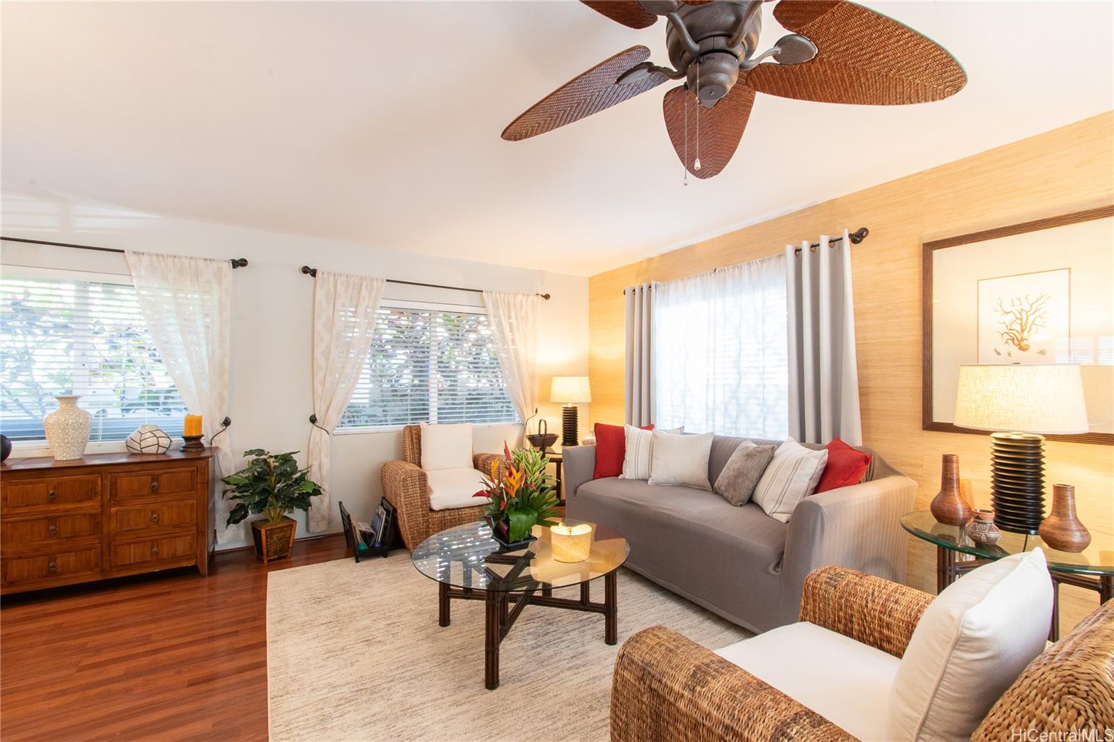 [0] => Rare "Island Chic" Retreat in Ma‘ili – Experience designer elegance at 87-1008 Kahiwelola Street, a meticulously curated sanctuary where coastal style meets mountain majesty. Nestled on a quiet cul-de-sac, this home stands out with striking teal siding and professional landscaping. Step into a bright, airy open floor plan featuring high-end grasscloth-style wall coverings, rich wood-inspired flooring, and custom faux wood blinds. The primary suite offers a resort-like escape with vaulted ceilings, elegant plantation shutters, and breathtaking framed views of the Waianae Range. Your private "secret garden" awaits! The fenced backyard is a tropical oasis filled with lush red ginger and mature foliage perfect for sunset BBQs. This unbeatable value is located just steps from the community pool and recreation center. Enjoy world-class West Side beaches, hiking, and the Ma‘ili Pillbox trail, all while being a short drive from Kapolei and Ko Olina. With its turn-key condition and prime location, this gem is priced for a quick sale. Schedule your showing today before it’s gone!