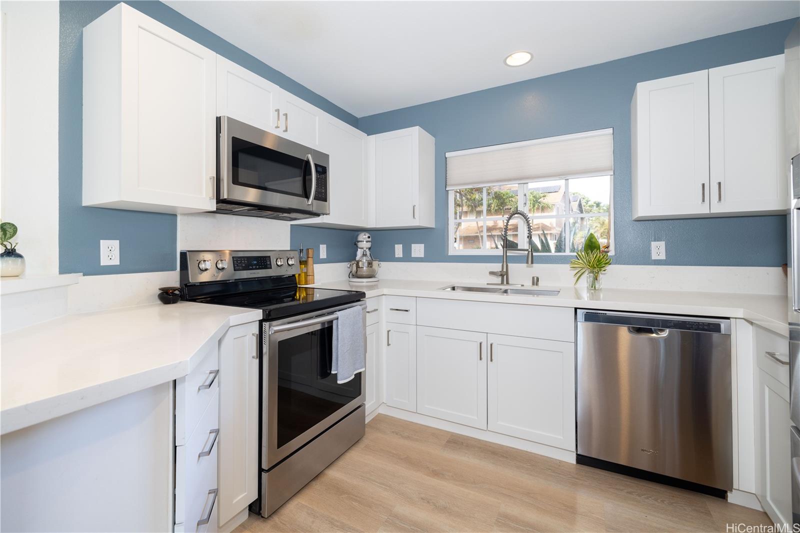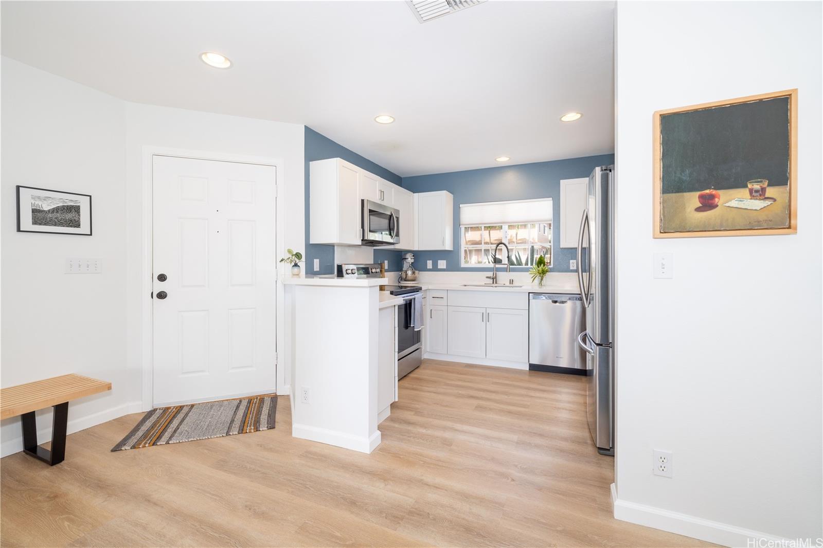 HOT NEW PRICE!! Turn-key perfect and meticulously maintained, this 3-bedroom is Sea Country is a must-see! Located on a cul-de-sac, this perimeter lot has mountain views from the backyard. Upgrades include: Luxury vinyl plank flooring throughout, custom blinds, kitchen with Silestone countertops, new cabinets and stainless-steel appliances. Rarely available garage plus three additional driveway parking spaces! Ideal for an outdoor lifestyle with the Pillbox Hiking Trail close by (less than a mile) and close location to the ocean. HOA amenities include water, sewer, front yard maintenance, exterior painting, roofing, and access to the community swimming pool, next to the community General Store. Easy to view on short notice. Listing by: Century 21 Island Homes (808) 888-7513