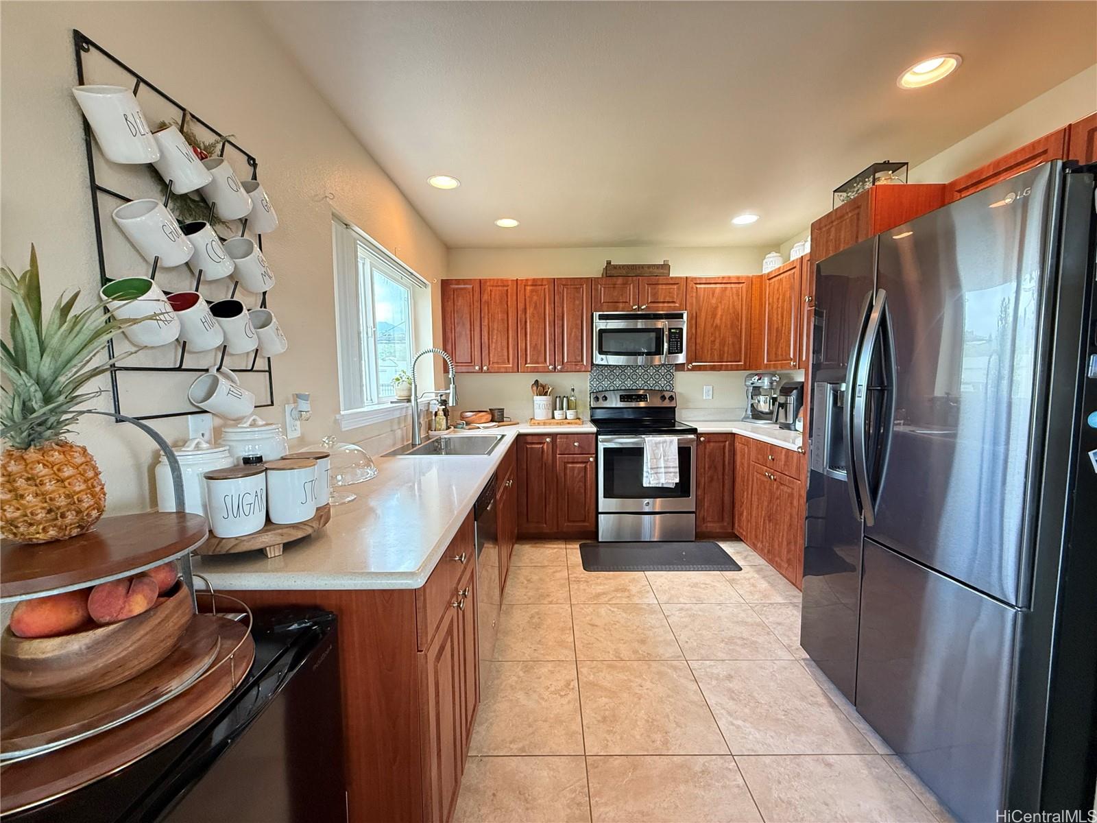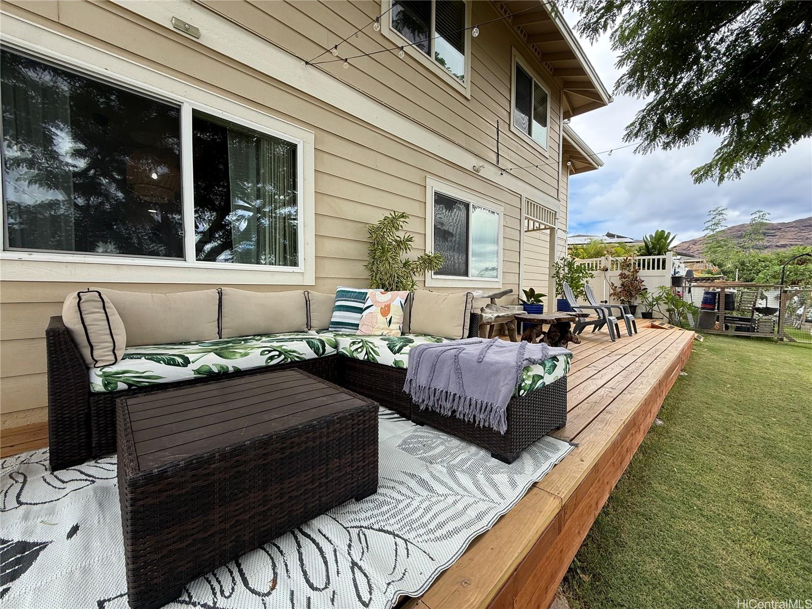 Discover a peaceful sanctuary at the end of Mokila Street, nestled in a charming cul-de-sac within the prestigious Sea Country community. This stunningly renovated home, masterfully updated by its previous owners in 2019 and further enhanced by the current owners in 2024-2025, exudes an enchanting ambiance that invites tranquility and inspiration. Boasting 4 spacious bedrooms and 2.5 luxurious bathrooms, this residence is designed for comfort, featuring modern central air conditioning and a remarkable 25-panel owned photovoltaic (PV) system that ensures energy efficiency. The expansive grounds offer an abundance of outdoor potential, cooled by 2 beautiful acacia trees featuring a huge wooden deck-sitting area, complete with a thriving vegetable garden and lush green lawns, all supported by an automatic sprinkler system—perfect for enjoying breathtaking sunsets. Experience the ultimate blend of elegance and serenity; this home truly is a masterpiece waiting for you to make it yours. VA assumable loan, rate is 3.25% (PennyMac, approx. $730K Balance). The Community perks include a swimming pool, clubhouse, and dog park! Listing by: Harper Island Realty LLC (808) 221-0667