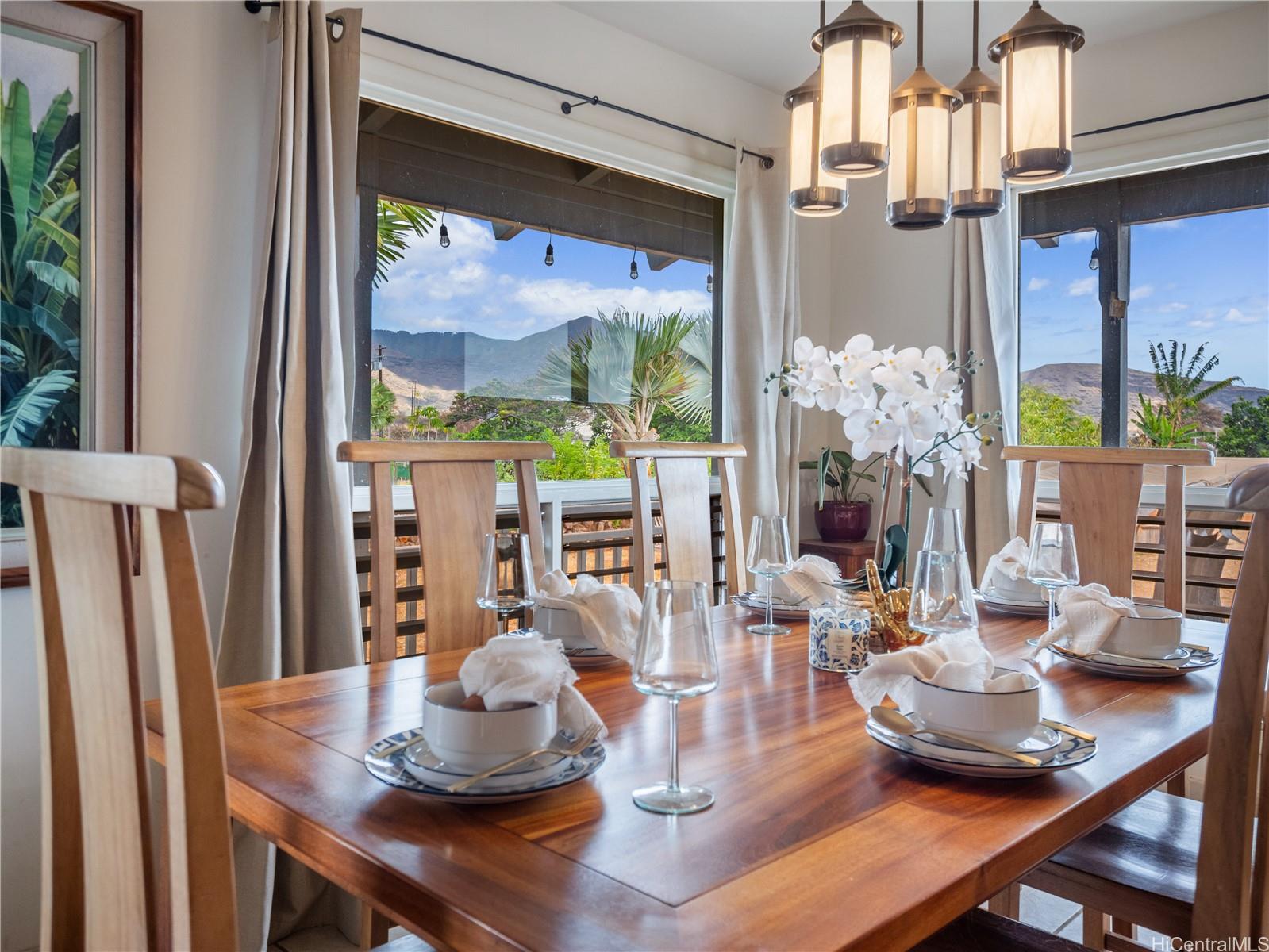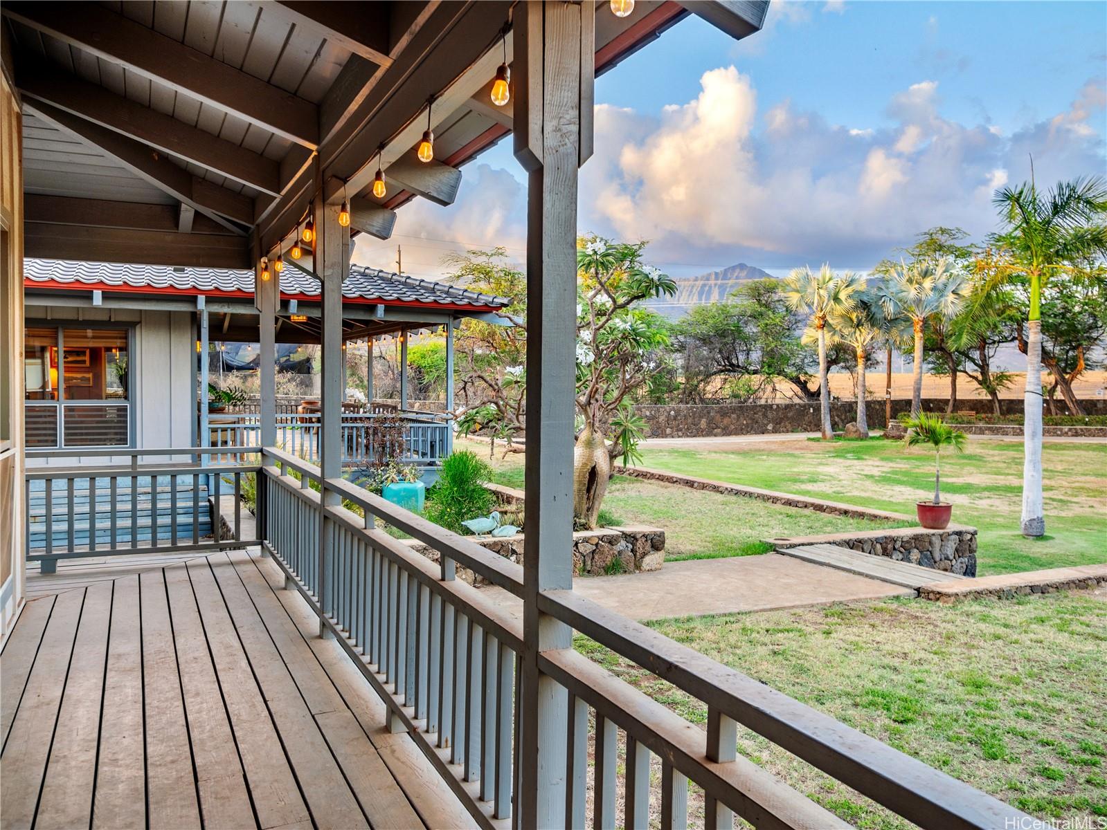 string(1199) "Retreat Agricultural Oasis on this massive 2.44-acre estate! This 5-bedroom, 2.5-bath valley home with ocean & mountain views can be yours. Rare opportunity for business or living, this property offers nearly 3,000 sq. ft. of living space, surrounded by a quintessential covered lanai reminiscent of Old Hawaii plantation living. Behind the electric gate of the fully fenced custom stone wall a palm-lined, expansive driveway leads to the home. Sustainable agricultural dream, with multiple fruiting trees, aquaponics area, & zoning for income-producing opportunity. Two living & dining areas flow into flexible rooms that can serve as a private office or guest rooms. The spacious upstairs primary suite boasts vaulted ceilings & a picture window framing the lush property, a large en-suite bath, second living room & an office. Additional bedrooms downstairs are well-suited for family, guests, or creative uses. Just minutes from the beach, surf breaks, hiking trails, Tamura’s Market, and a short drive to KoOlina and Kapolei, this rare property combines privacy, convenience, and the charm of country agricultural living. Come experience paradise behind the gates of 87-251 Paakea Road today!"