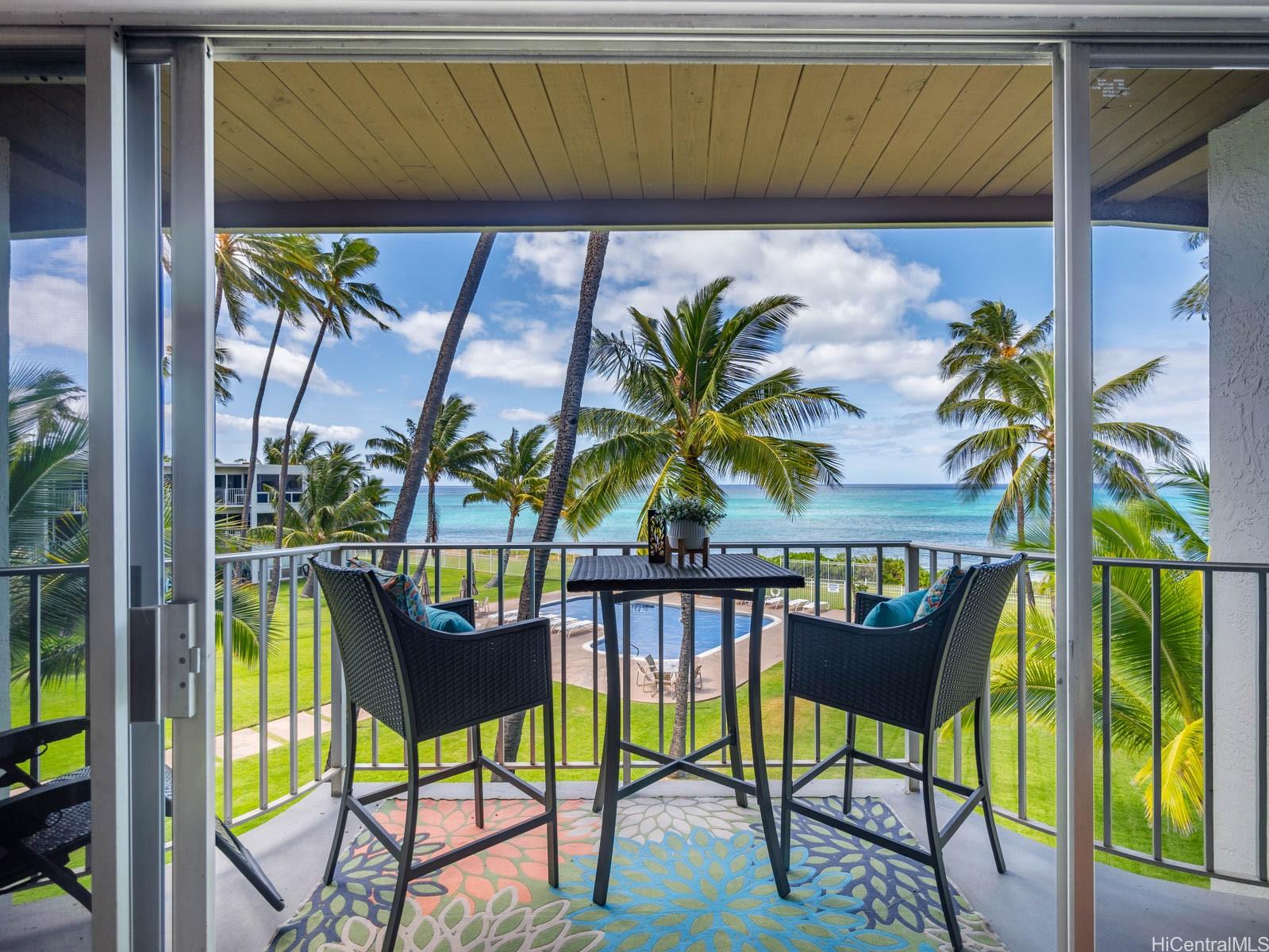[0] => Welcome to your coastal retreat! This charming oceanfront 1 bedroom, 1 bathroom condo offers breathtaking, unobstructed views of the sparkling blue waters and golden sandy shores. Step inside to discover a beautifully designed, open-concept living space bathed in natural light that perfectly captured the beauty or sunrises and sunsets. Nicely upgraded floorings and ceilings bring an elegant touch of coastal living. The spacious bedroom has A/C window unit and walk in closet. Relax and unwind by the pool or your private lanai where you can savor your morning coffee or unwind with a sunset drink. Enjoy resort-like amenities in a meticulously maintained building with secure gated access, night time security, resident manager, and direct beach access. This unit comes with 1 assigned parking and plenty of guest parking. Maintenance fees cover water, sewer, trash, cable/internet. The building is located close to shopping, schools, beaches, Ko’Olina and much more.