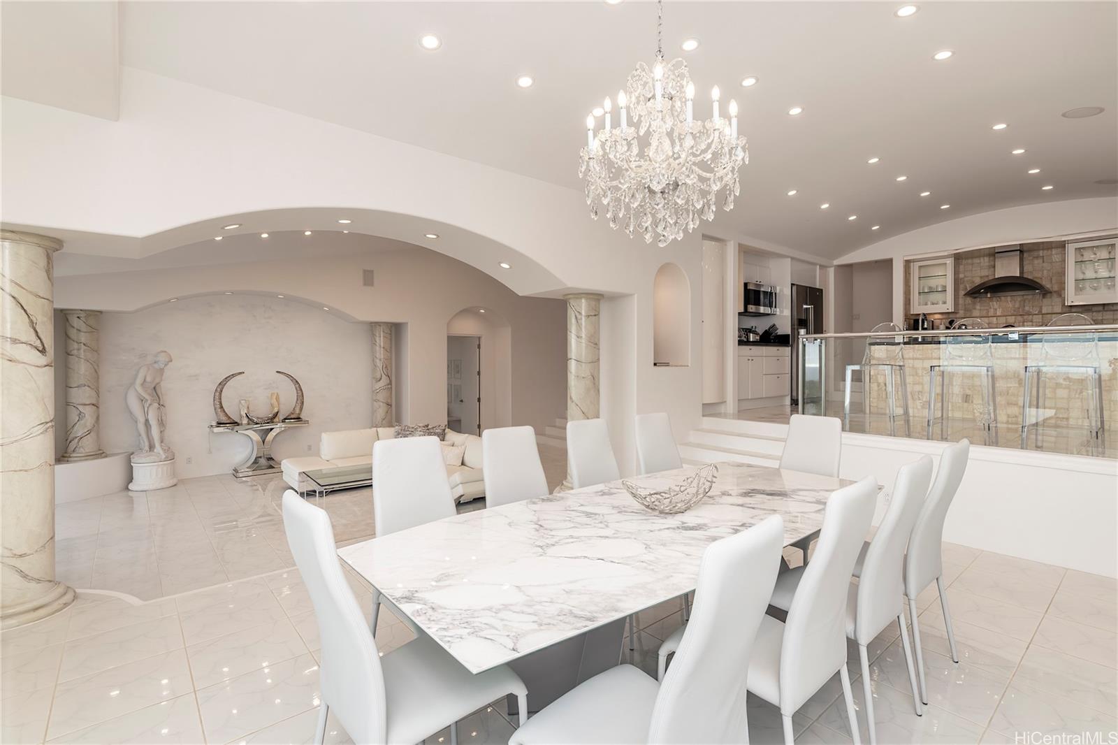 Perched on the eastern facing perimeter of the prestigious Hawai’i Loa Ridge, 875 Ikena Circle brings a unique grandness to Oahu. Enjoy picturesque views of the Pacific Ocean, Hawai’i Kai Marina, Koko Head, and Portlock. A multi level layout provides the ideal recipe for entertainment and multigenerational living. The main level of the home showcases vaulted ceilings and an abundance of natural light. A spacious primary bedroom suite is situated on the main level adjacent to the living room. Make your way downstairs where you are presented with 3 suites along with an additional living room that opens to the pool deck. A detached pool house provides a personal sanctuary that can be utilized as a home office, a space for guests, or a cozy man cave. Amenities within the community include: Gated entry, 24/7 security, tennis & pickleball. Listing by: Coldwell Banker Island Prop (808) 800-7308