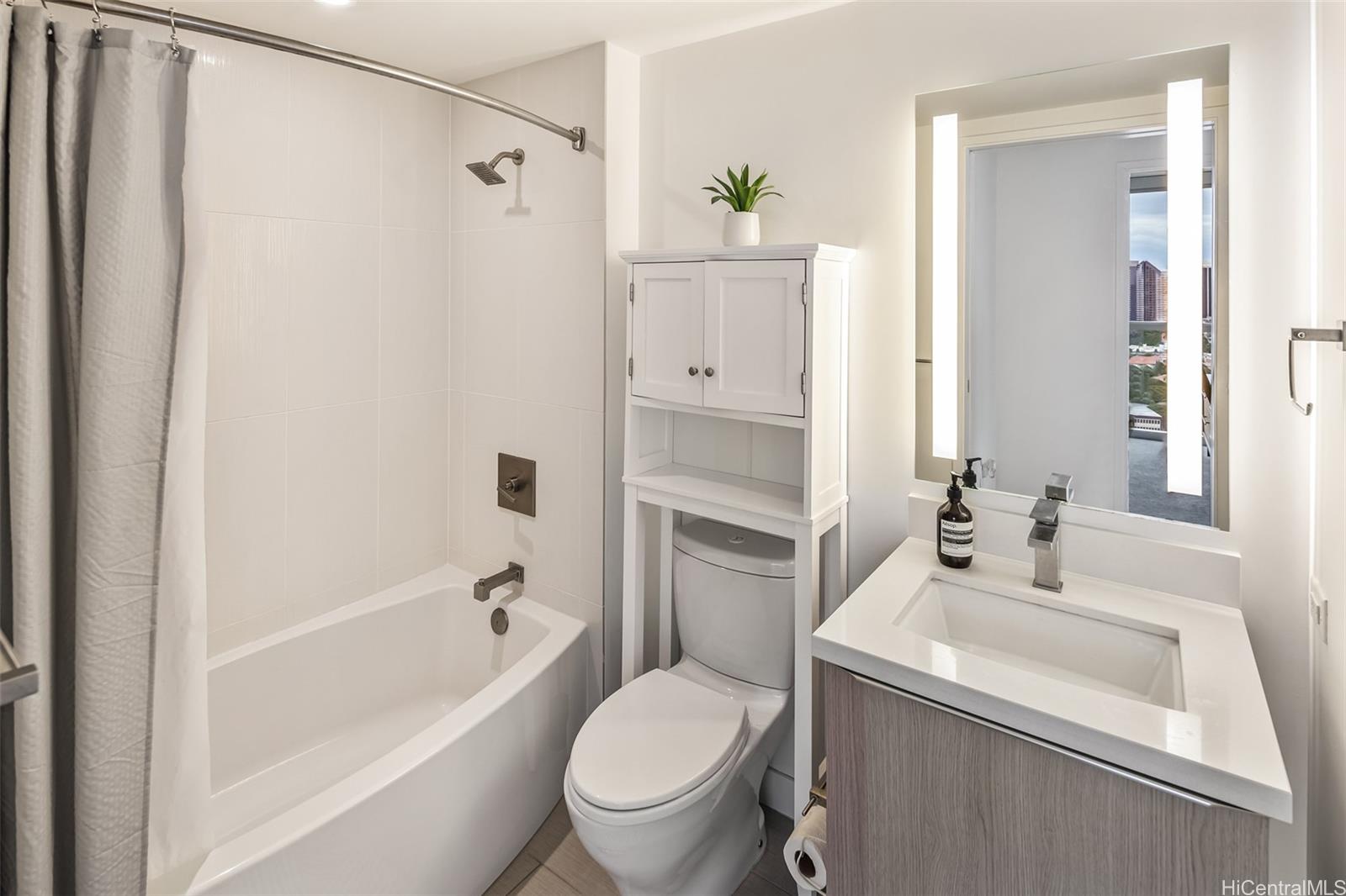 High-floor 3-bedroom condo in Kakaako with ocean, city and mountain views. This unit is move in ready and thoughtfully laid out for everyday living. From the moment you enter, the unit offers ocean views and with floor to ceiling windows that bring in steady, natural light, all throughout the day. The floor plan is practical and livable, featuring a separate laundry room, an open kitchen with a large island, and a living area that comfortably accommodates both relaxing and entertaining. The lanai seats 2+ and the sunsets from here are incredible. The kitchen features Studio Becker cabinetry, soft-close drawers, Bosch stainless steel appliances and a quartz countertop for the island. A great gathering place in this home is indeed the kitchen. Engineered hardwood flooring runs throughout the main living area and has been well maintained. Each room is equipped with motorized shades for heat and light control. The primary suite is spacious with incredible ocean views, walk in closet and a dual vanity. The unit comes with 2 side by side parking stalls. Pets are allowed. Building is centrally located to all the conveniences of a modern city like Honolulu is. Come see today! Listing by: Coldwell Banker Realty (808) 284-2459
