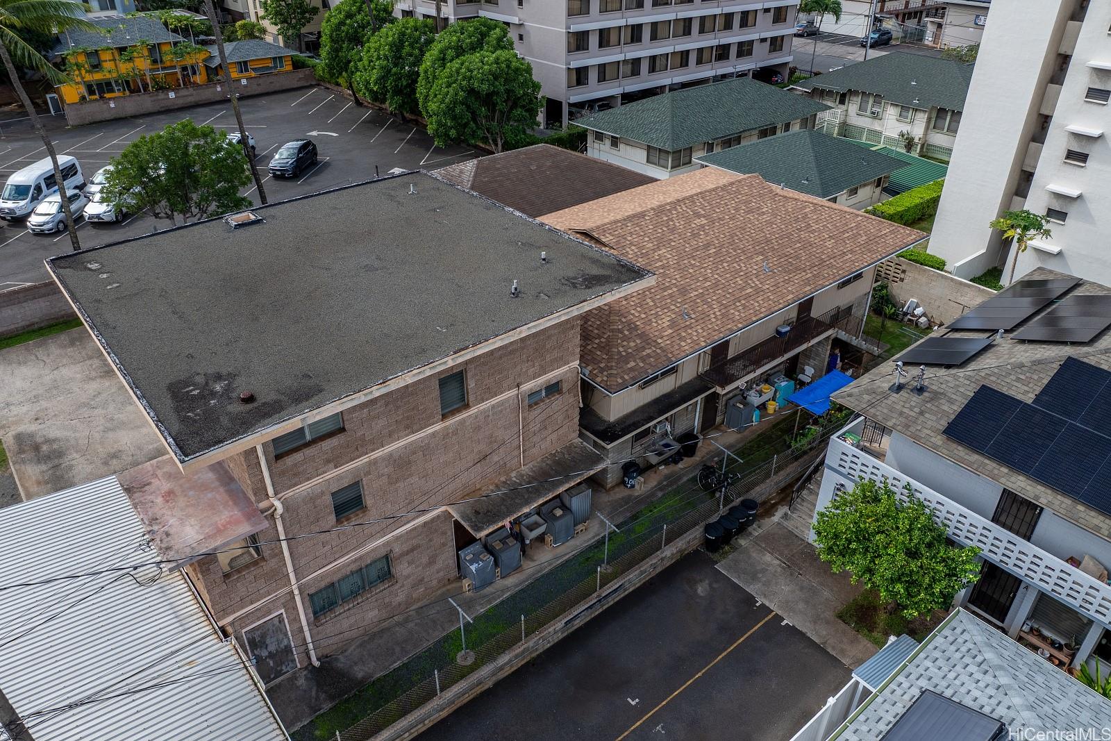 [0] => Located across from the former Willows Restaurant in the McCully–Moiliili area, this A-2 zoned multifamily property offers immediate upside through renovation and lease-up. Situated on an 11,040 sqft lot, the property consists of three separate buildings with a total of eight units, including seven two-bedroom units and one three-bedroom unit, all separately metered for electricity. Current rents are below market and two units currently vacant, requiring renovation and presently used as storage. All tenants are month-to-month, providing flexibility for repositioning. The buildings were constructed in different periods: the front-left structure is a one-story duplex built in 1941; the rear-right building is a two-story structure built in 1954, containing four units (two per floor); and the front-right building is a three-story structure built in 1976, featuring a two-bedroom unit on the first floor and a three-bedroom unit spanning the second and third floors. Parking includes a two-car carport, a four-car carport, and several additional open parking spaces. Buyer to conduct their own due diligence. Do not disturb tenants.
