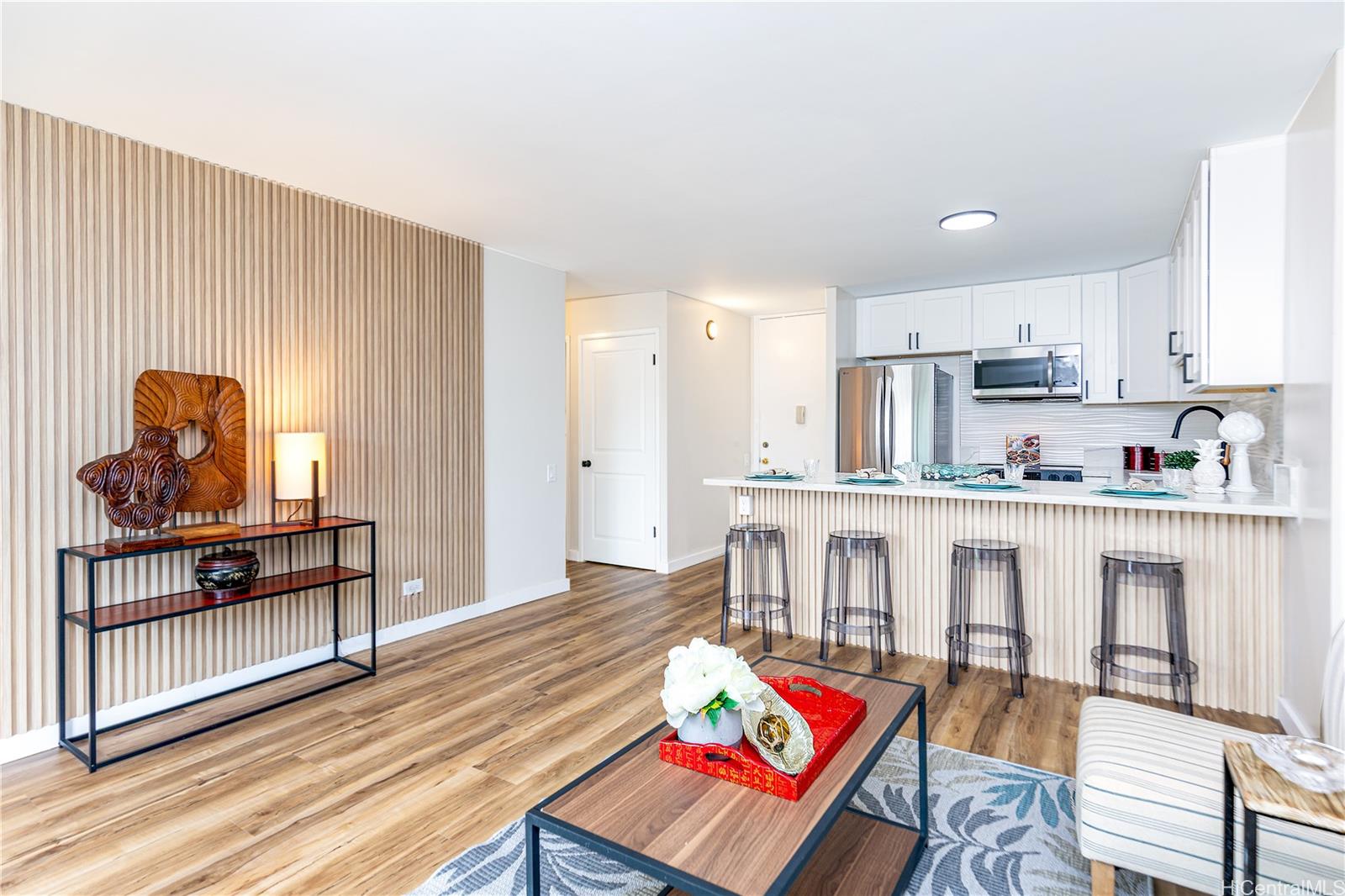 Beautifully and recently renovated 2 bedroom, 1 bathroom & 1 covered parking unit; with an in-unit washer and dryer. New Stainless Steel Appliances, Laminate floors throughout with contemporary tiled bath with a contemporary accent wall and eat in kitchen. Conveniently located minutes from Salt Lake Shopping Center, restaurants, airport, schools and major bus lines. Must see to appreciate. Listing by: Coldwell Banker Realty (808) 738-3904