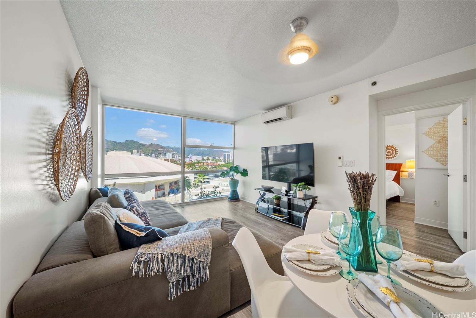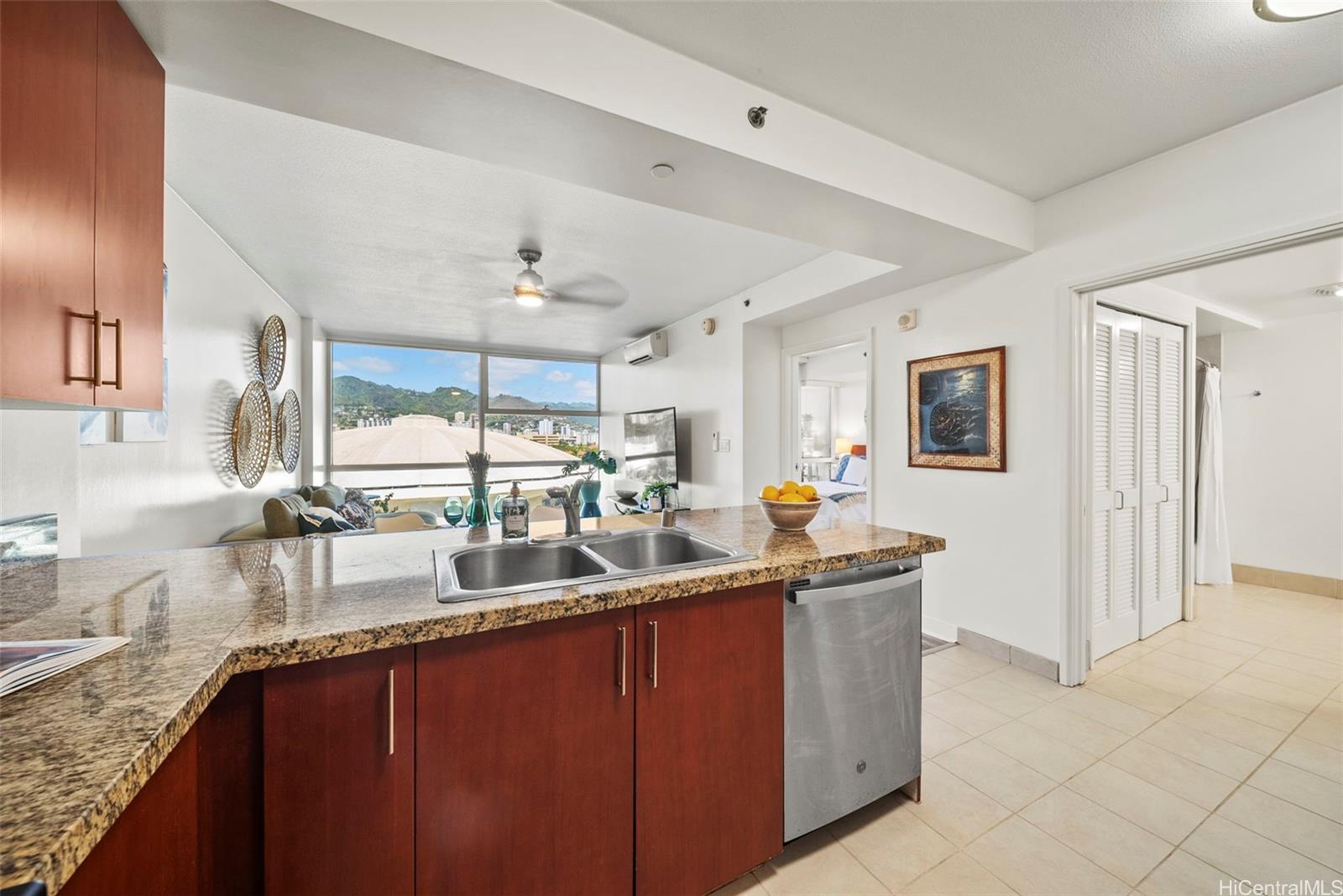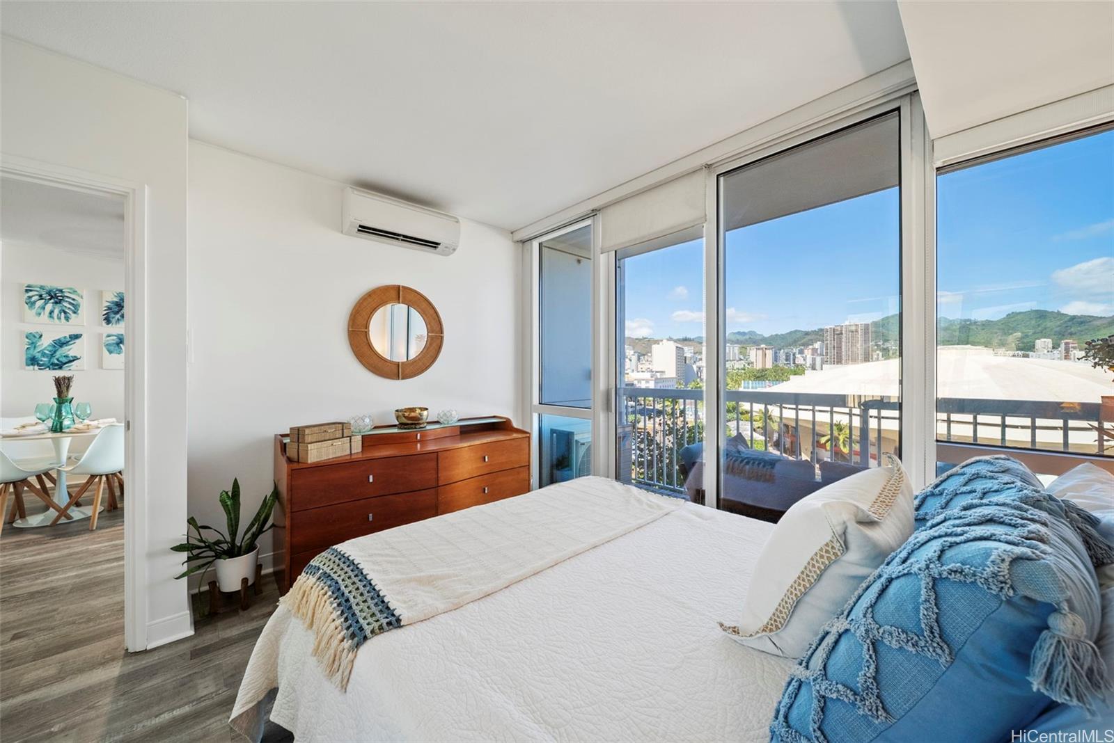 string(903) "Stylish 1-bedroom, 1-bath condo with floor-to-ceiling windows showcasing stunning city and mountain views. The open layout features a modern kitchen with granite countertops, stainless steel appliances, and plenty of cabinet space that flows seamlessly into the living area. Step out onto your private lanai—perfect for morning coffee, evening sunsets, or entertaining guests. The bright bedroom offers direct lanai access, and the bathroom is finished with sleek, contemporary fixtures. Additional highlights include split A/C, in-unit laundry, and one covered parking stall. Enjoy resort-style amenities such as a pool, jacuzzi, fitness center, BBQ area, garden boxes, recreation room, and 24-hour security. Located in the heart of Kaka‘ako, just a short walk to Ala Moana Center, beaches, and top dining spots, this residence combines comfort, style, and urban convenience in one perfect package."