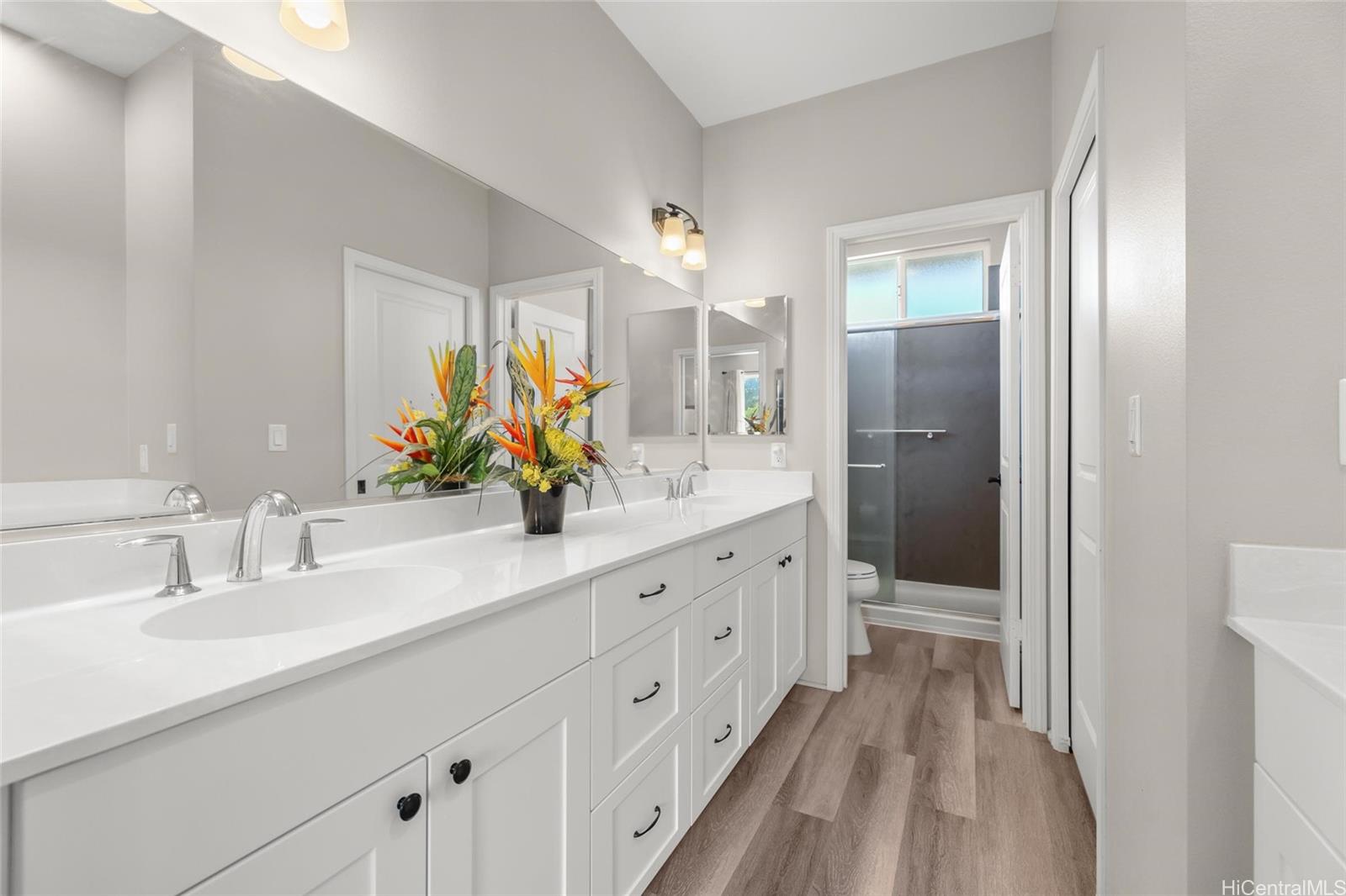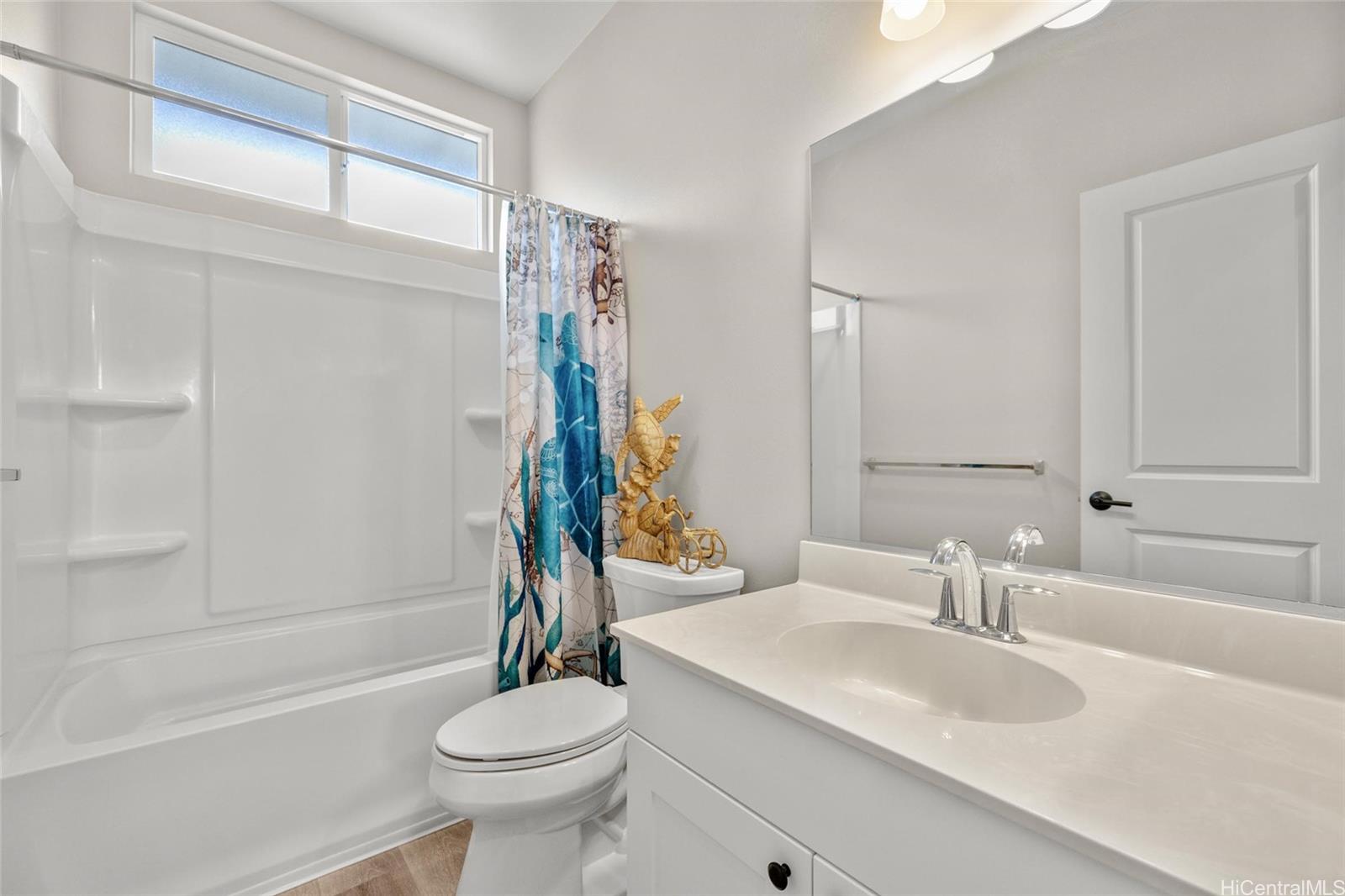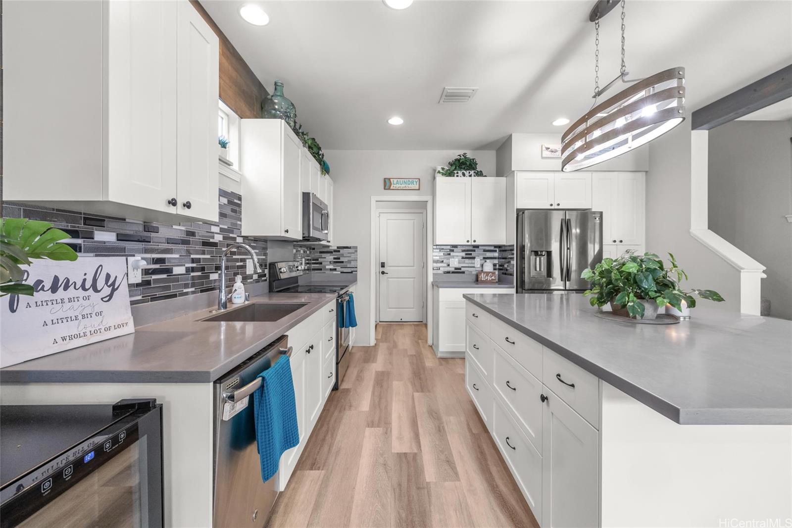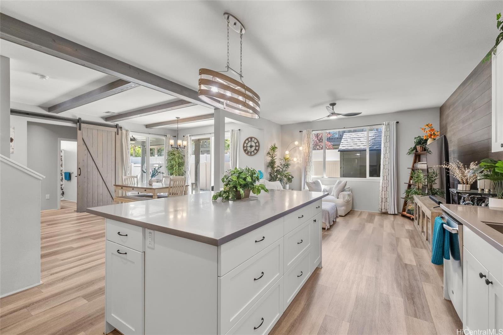 Come home to Coral Ridge, where comfort, style, and modern living come together beautifully. Enter through the inviting double entry doors into a 4-bedroom, 3-bath residence that looks straight out of a model home - impeccably maintained, bright, and designed for today's lifestyle. The open-concept kitchen features a large island, sleek finishes, and abundant natural light - perfect for entertaining family and friends. This home offers high ceilings, central air conditioning and a thoughtful floor plan that blends functionality with elegance. Downstairs, a charming barn door creates a private retreat with its own bedroom and bath, ideal for guests or multigenerational living. Enjoy peace of mind and energy efficiency with 17 owned PV panels and a Tesla battery system. Outdoors, the fully fenced, low-maintenance yard provides plenty of space to relax or host gatherings, while the long driveway offers ample parking for visitors. Nestled on a quiet cul-de-sac, you're perfectly located near Hoakalei Country Club, Coral Creek Golf Course, Ka Makana Ali'i, and Wai Kai -- making your backyard a true playground for recreation and leisure. Come experience the best of island living. Listing by: Engel & Volkers Honolulu (808) 722-6276