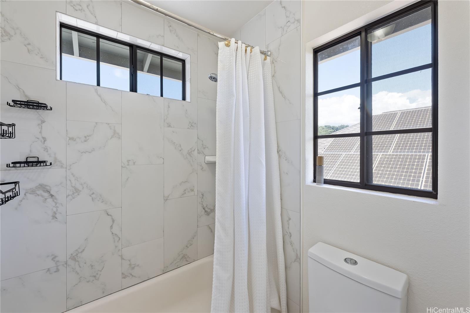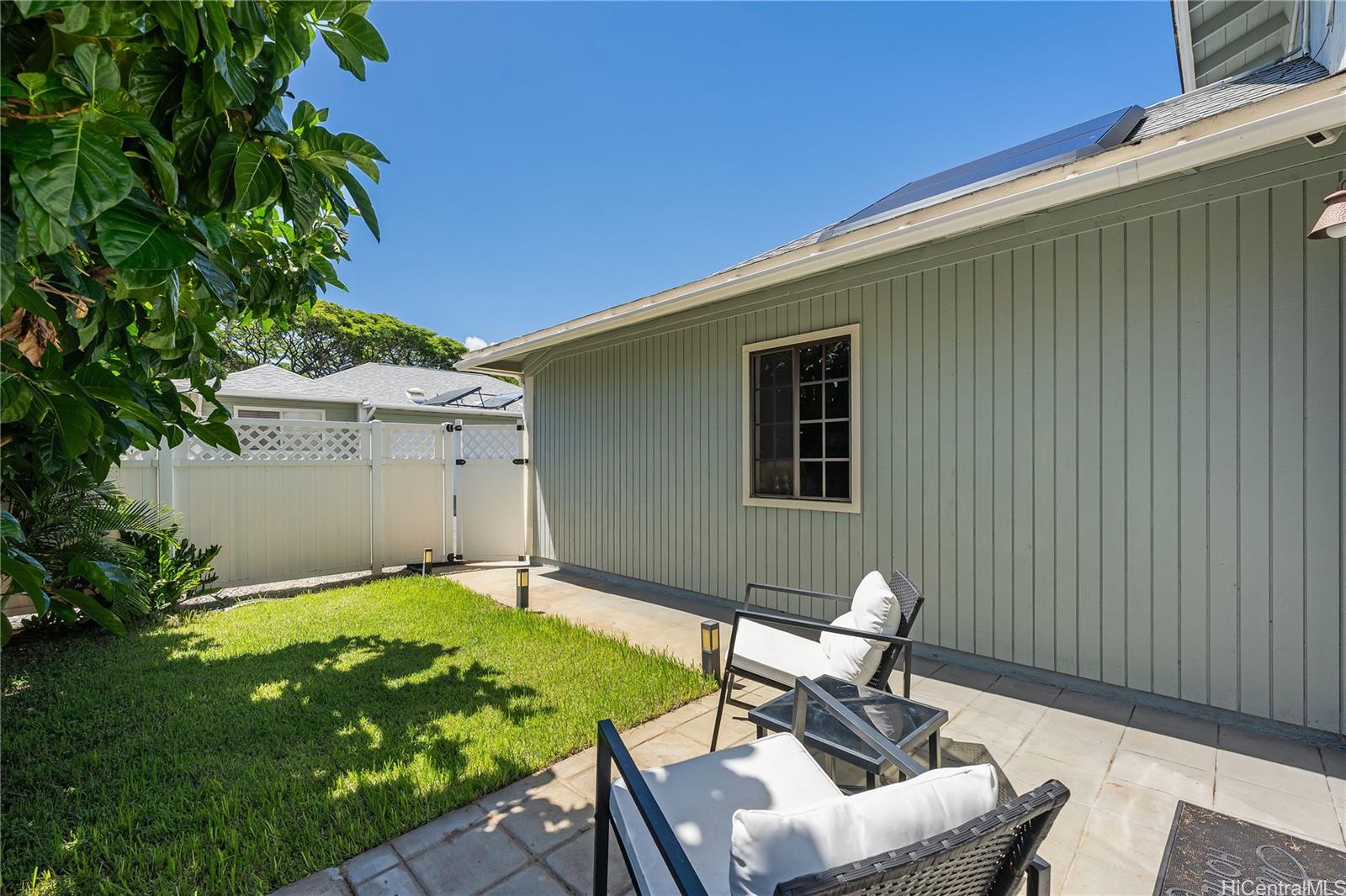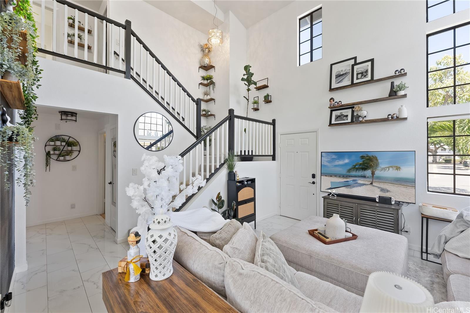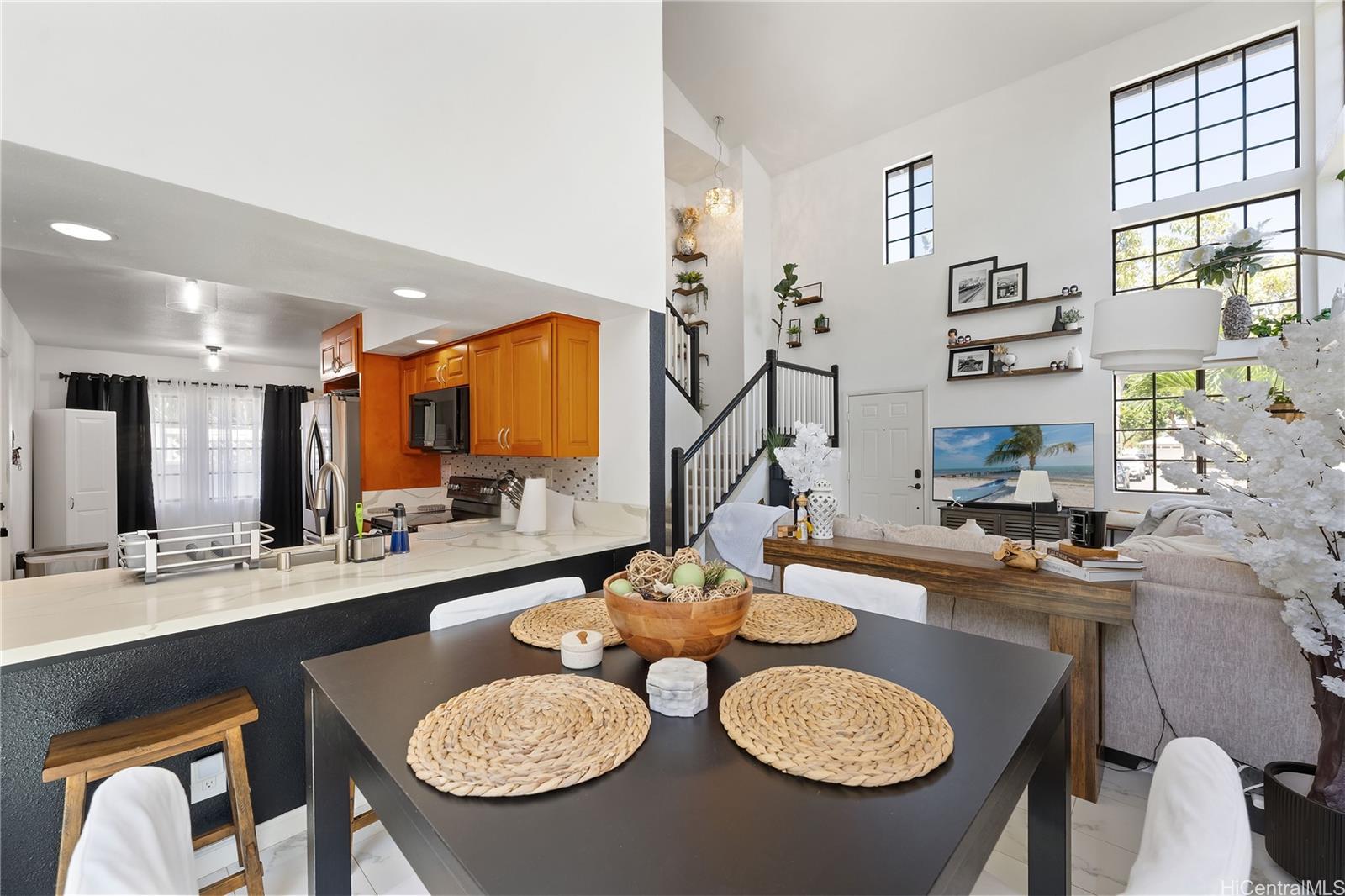 This beautiful single-family home offers 3 generously sized bedrooms, 2 spacious bathrooms, and a range of spectacular features that are sure to impress. As you step inside, you'll be welcomed by soaring ceilings and an abundance of natural light, creating a bright and airy atmosphere. Stylish updates include a new accent wall with floating shelves, adding both character and functionality. The kitchen showcases quartz countertops, stainless steel appliances, and ample space for meal prep and entertaining. On the first floor, you'll find a convenient bedroom and full bathroom. The enclosed yard is a peaceful and private retreat, perfect for unwinding or hosting outdoor gatherings. Plus, with plenty of street parking available, parking will never be an issue for you or your guests. One of the standout features of this home are the 24 photovoltaic panels (8.13kW system), and a battery tesla 13.5 KWH powerwall, which will help lower energy bills while offering an eco-friendly power source. Located just minutes from the freeway on-ramp, shopping, dining, entertainment, and close to some of Hawaii's best beaches. Listing by: Coldwell Banker Realty (808) 738-3904