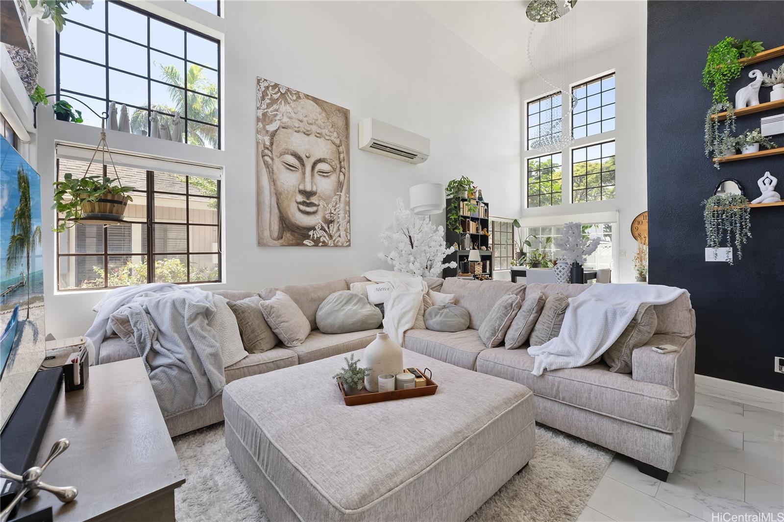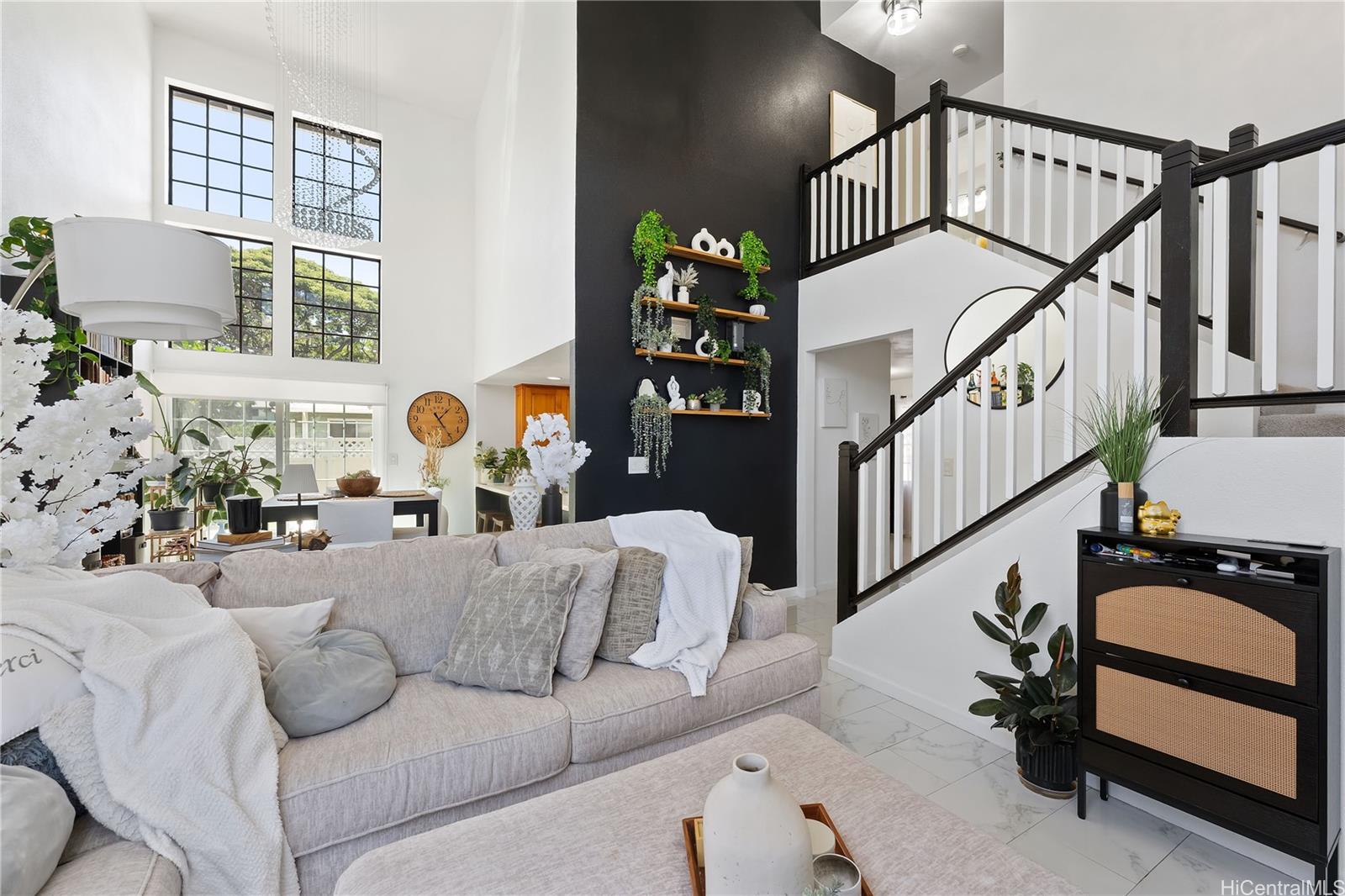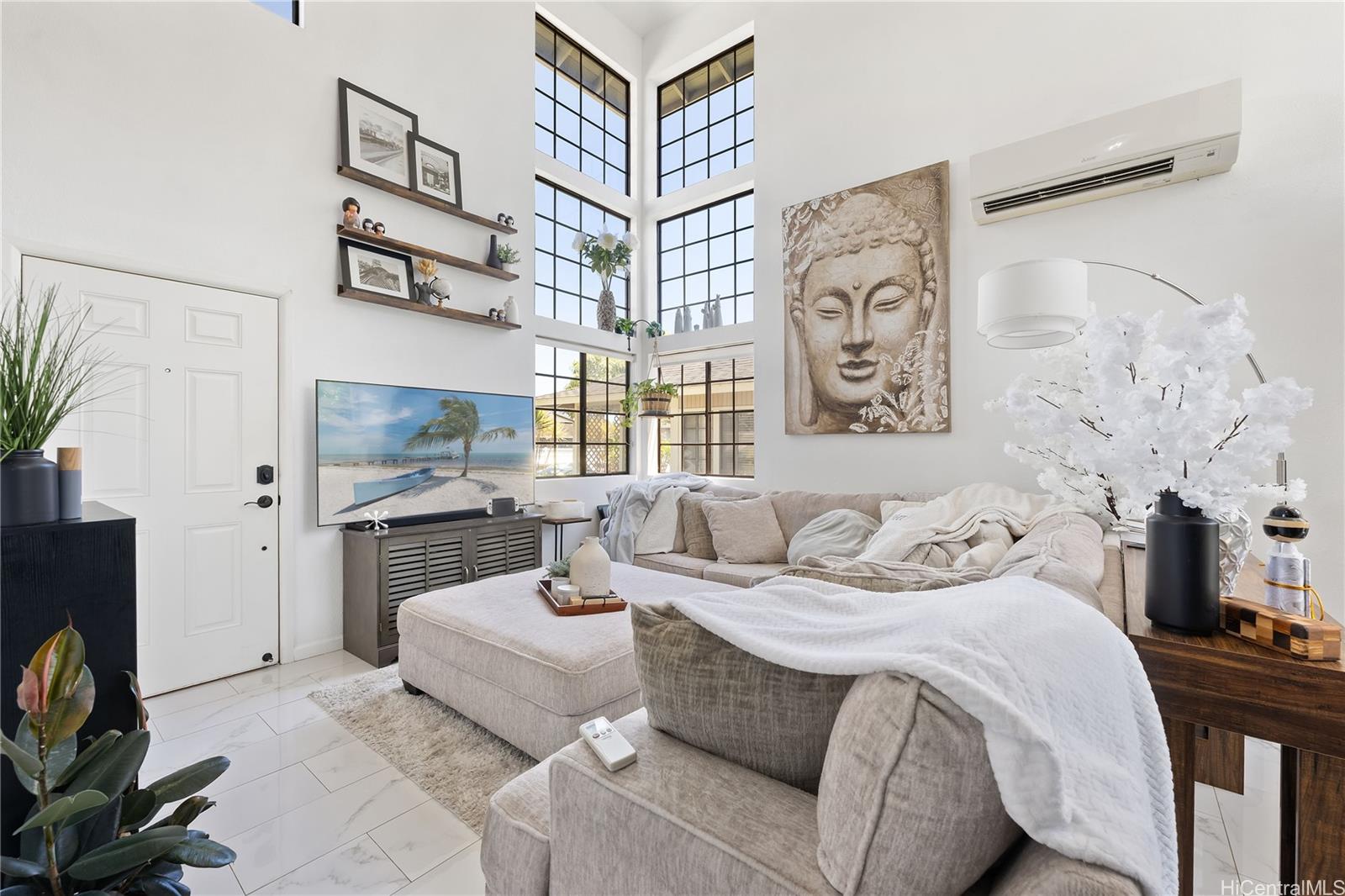This beautiful single-family home offers 3 generously sized bedrooms, 2 spacious bathrooms, and a range of spectacular features that are sure to impress. As you step inside, you'll be welcomed by soaring ceilings and an abundance of natural light, creating a bright and airy atmosphere. Stylish updates include a new accent wall with floating shelves, adding both character and functionality. The kitchen showcases quartz countertops, stainless steel appliances, and ample space for meal prep and entertaining. On the first floor, you'll find a convenient bedroom and full bathroom. The enclosed yard is a peaceful and private retreat, perfect for unwinding or hosting outdoor gatherings. Plus, with plenty of street parking available, parking will never be an issue for you or your guests. One of the standout features of this home are the 24 photovoltaic panels (8.13kW system), and a battery tesla 13.5 KWH powerwall, which will help lower energy bills while offering an eco-friendly power source. Located just minutes from the freeway on-ramp, shopping, dining, entertainment, and close to some of Hawaii's best beaches. Listing by: Coldwell Banker Realty (808) 738-3904