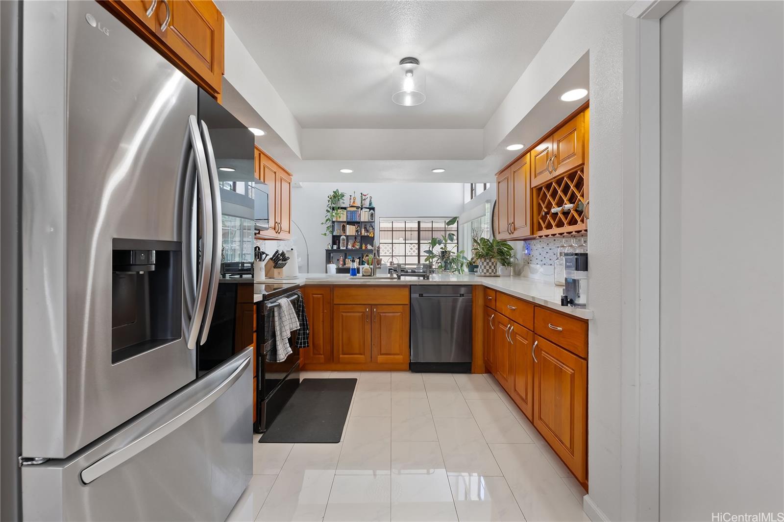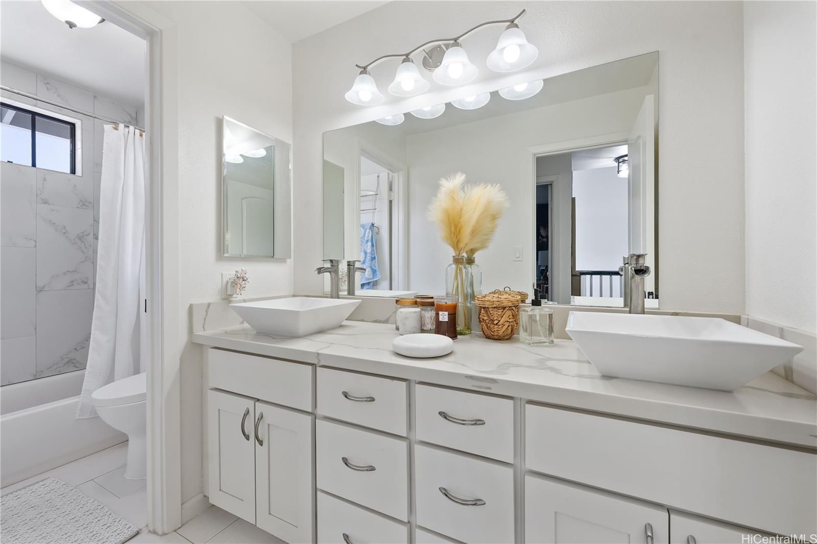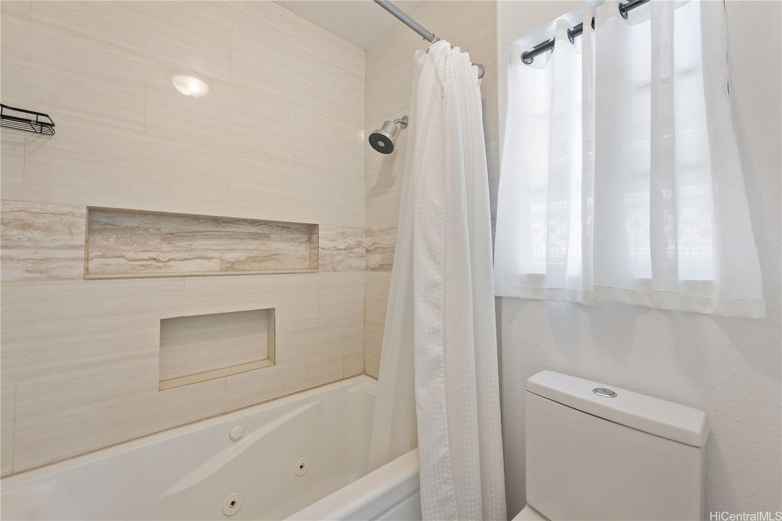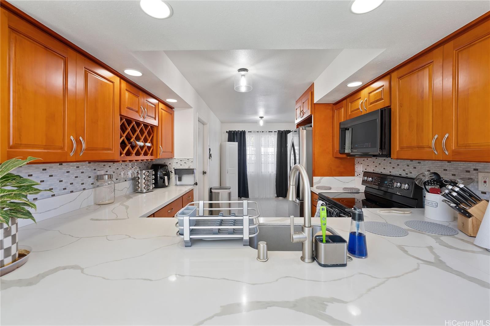 This beautiful single-family home offers 3 generously sized bedrooms, 2 spacious bathrooms, and a range of spectacular features that are sure to impress. As you step inside, you'll be welcomed by soaring ceilings and an abundance of natural light, creating a bright and airy atmosphere. Stylish updates include a new accent wall with floating shelves, adding both character and functionality. The kitchen showcases quartz countertops, stainless steel appliances, and ample space for meal prep and entertaining. On the first floor, you'll find a convenient bedroom and full bathroom. The enclosed yard is a peaceful and private retreat, perfect for unwinding or hosting outdoor gatherings. Plus, with plenty of street parking available, parking will never be an issue for you or your guests. One of the standout features of this home are the 24 photovoltaic panels (8.13kW system), and a battery tesla 13.5 KWH powerwall, which will help lower energy bills while offering an eco-friendly power source. Located just minutes from the freeway on-ramp, shopping, dining, entertainment, and close to some of Hawaii's best beaches. Listing by: Coldwell Banker Realty (808) 738-3904