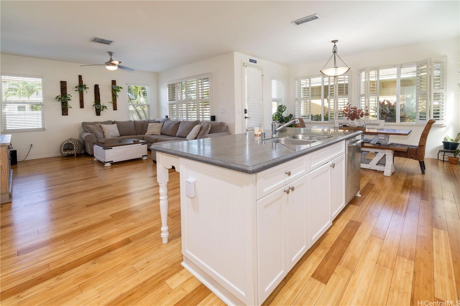 string(629) "Spacious 4-bedroom, 2.5-bath home on a corner lot, featuring Berber carpeting upstairs, upgraded shaker cabinets, 42 NEW windows, plantation shutters and a large yard perfect for outdoor enjoyment. The primary suite offers an ensuite bathroom with a garden soaker tub and step-in shower. Energy-efficient photovoltaic panels help keep utility costs low. Conveniently located near shopping, Wai Kai and the esteemed Hoakalei Country Club. Monthly association fees cover essential amenities such as internet, basic cable, access to a dog park, and resort-style recreation center with tennis and pickleball courts, pool and hot tub."