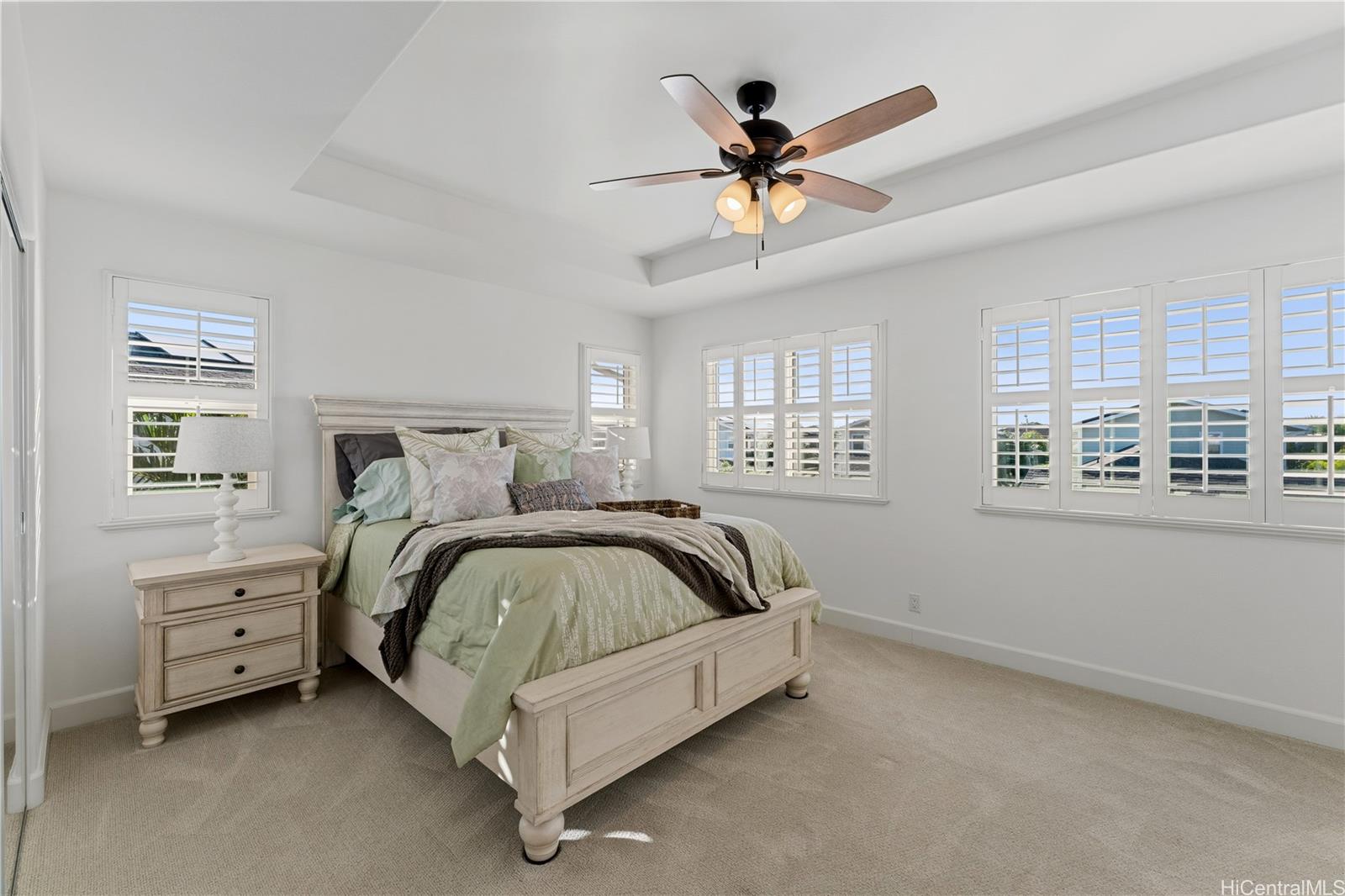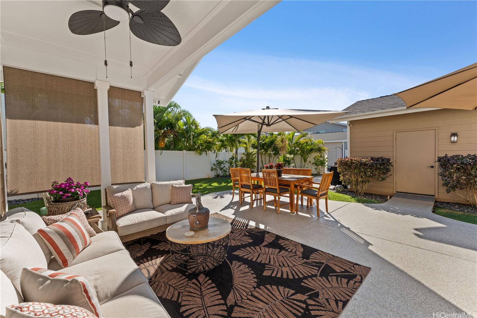 This is the one you’ve been dreaming about! An immaculate 4 bedroom, 3 full bath home perfectly positioned across from a peaceful open-space park in the highly sought-after Hoakalei@Kuapapa community. Featuring a desirable main-floor bedroom and full bath, this spacious and thoughtfully designed home offers flexibility and comfort for any lifestyle. With 23 owned Tesla PV panels, 2 owned Tesla batteries, and a solar hot water heater, you’ll enjoy low energy bills and sustainable living year-round. The extended garage with custom built ins provides ample storage, while the expanded lanai and oversized lush backyard make this home an entertainer’s paradise. Additional highlights include numerous builder upgrades, an HOA-approved 3rd parking pad, plantation shutters throughout and gutters to name just a few. The low monthly HOA fee includes access to amenities like the pool, hot tub, lounging areas, and access to the Wai Kai Lagoon, HD cable and internet. Located just minutes from the exciting new Wai Kai Complex, with top-tier restaurants, shops, a farmers market, and even a surfing ranch – all just blocks from the ocean. Bring your most discerning buyer before it is too late. Listing by: Real Broker (808) 352-3099