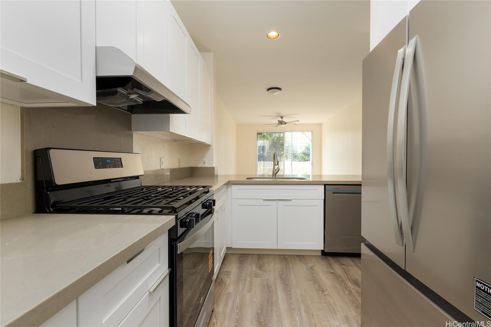 VA-friendly opportunity for Military Buyers! Welcome to Kekuilani Villas — a charming community in the heart of Kapolei! This 2-bedroom, 2-bath, 2-parking townhouse offers spacious living with nine-foot ceilings, luxury vinyl flooring, and fresh interior paint. The recently renovated kitchen features brand-new shaker cabinets, quartz countertops, and all-new appliances. The primary bedroom includes an ensuite bathroom for added comfort. Enjoy access to the Villages of Kapolei Community Center and pool. Conveniently located near Ka Makana Ali‘i Shopping Center, Kapolei Golf Course, parks, and restaurants, this is a wonderful opportunity to make it your own home or an investment property. Listing by: Coldwell Banker Realty (808) 479-2089