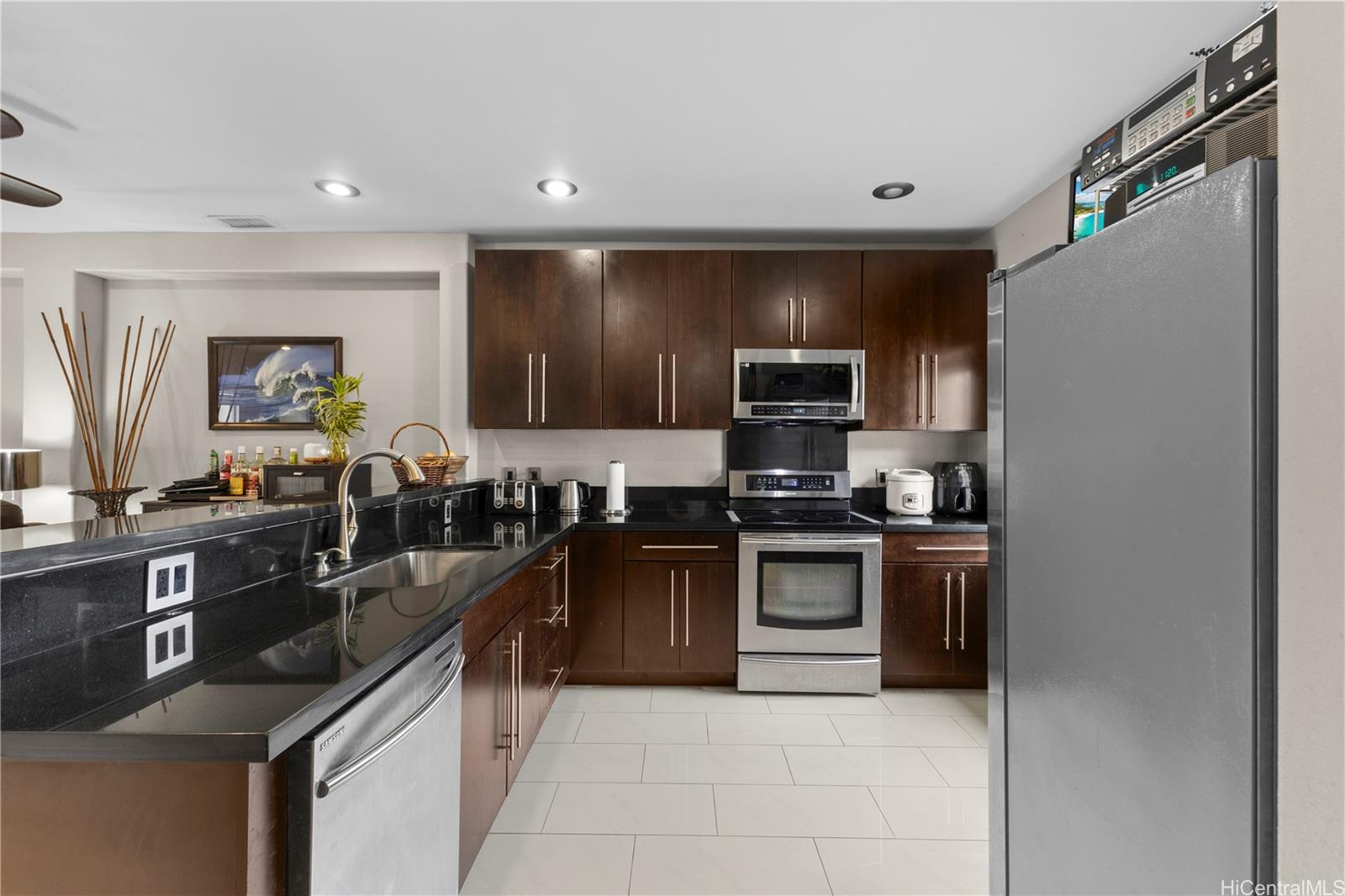 Welcome to this beautifully maintained townhome in the highly desirable Ocean Pointe community! This home combines comfort and style, featuring two spacious primary bedrooms, one including its own en-suite bathroom, open kitchen and living concept, and so many more tasteful upgrades! The first floor showcases stunning white tile flooring for both durability and elegance, while the kitchen is equipped with updated stainless steel appliances. Step outside to your private, beautifully landscaped backyard—an outdoor oasis complete with a partially covered lanai, perfect for relaxing or entertaining. Conveniently located just minutes from restaurants, shopping, beaches, and more. Come discover everything this exceptional home has to offer! ALL FURNITURE IN THE HOME IS ALSO FOR SALE AND CAN BE NEGOTIATED. Listing by: Hawaii Military Realty, Inc. (808) 225-5699