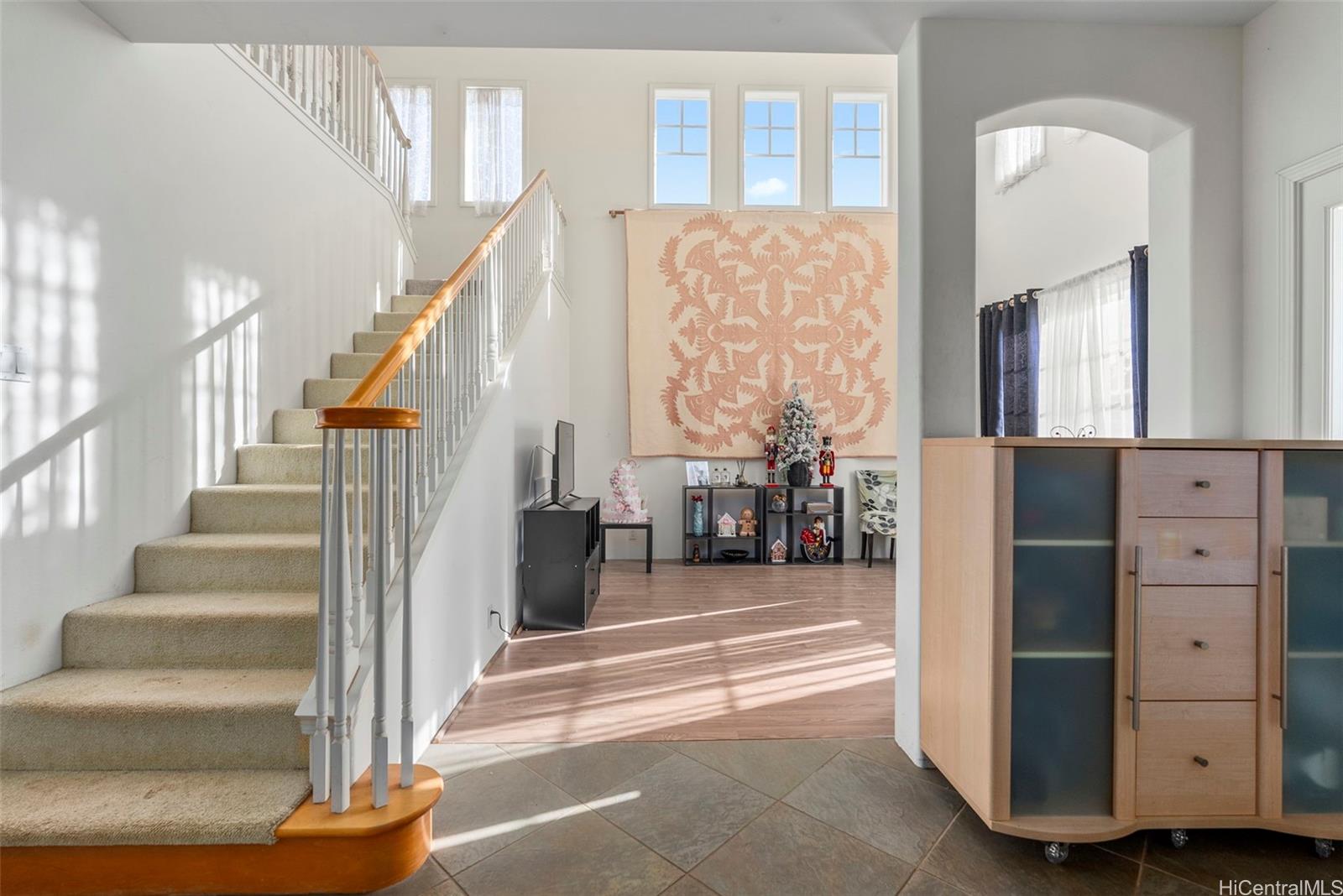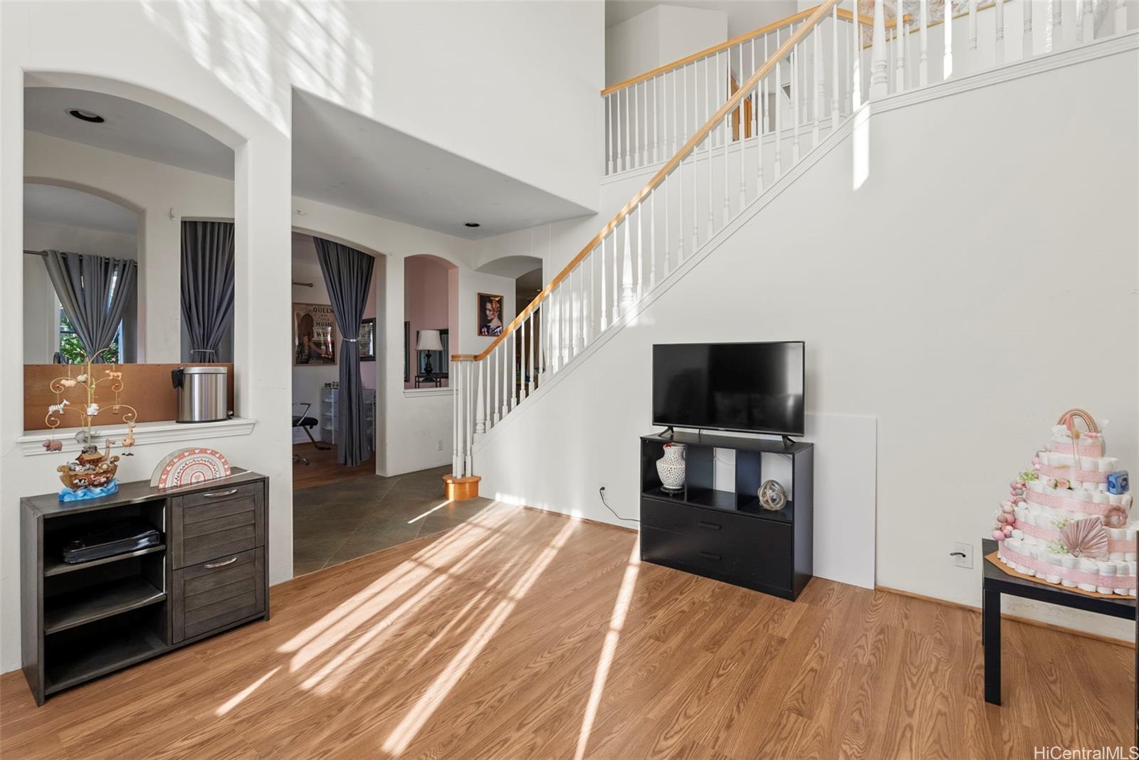 PRICED WELL BELOW ASSESSED VALUE! Rarely available in Ewa Gentry Woodbridge! Known for its spacious homes and coveted driveways, this community offers layouts that are hard to find. This home is ready for a creative vision to bring it back to life. An incredible opportunity in a desirable neighborhood with limited inventory. This home features 2,700 sq ft of interior living space with THREE large living rooms, two on the main level and one upstairs, providing exceptional flexibility for entertaining, multigenerational living, or work-from-home needs. The floor plan offers great separation, with the primary bedroom located on one side of the home and two additional bedrooms down a long hallway on the opposite end. Bedrooms #2 and #3 share their own large living room, creating a unique private retreat rarely found in homes of this size. A long driveway accommodates 2 - 3 vehicles or even a boat, leading to a two-car garage. The yard wraps around the sides and rear of the home, offering ample outdoor space and endless potential. Pre-foreclosure sale. Great opportunity for buyers looking to add value. *One or more photos have been enhanced* Listing by: Homes of Hawai'i Real Estate (808) 284-2076