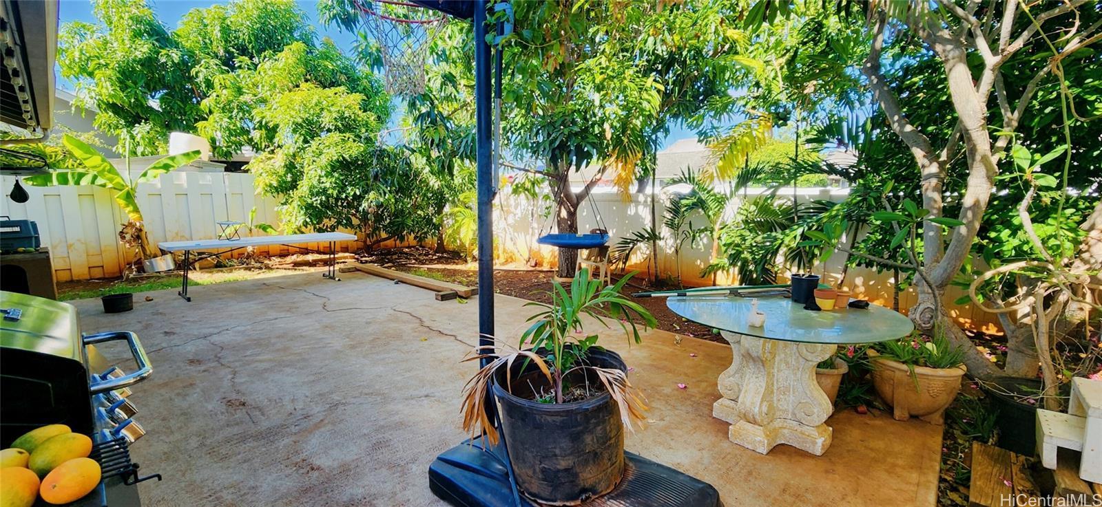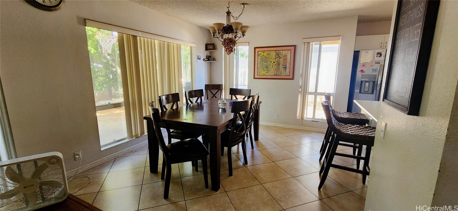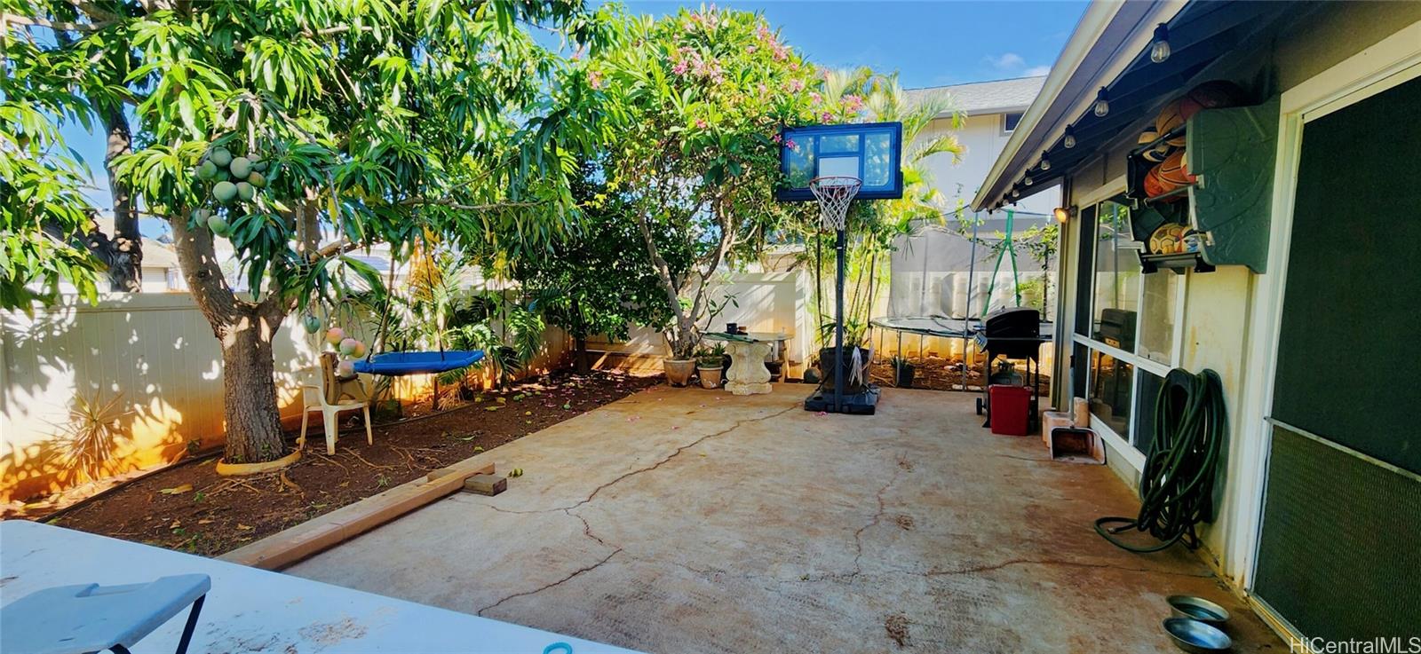Excellent opportunity to customize this spacious 4 bedroom / 3 bath single-family residence. This home features a generously sized, first-floor layout, complete with a full bath and tons of storage space. Located in a cul-de-sac, this property boasts one of the largest lots in Sun Terra, featuring a fully fenced in wrap-around yard and an extended driveway capable of accommodating 3 - 4 vehicles. The back yard includes a plumeria tree, as well as mature fruit trees: 2 mango varieties, passion fruit, papaya, pomelo, and apple bananas. Listing by: Keller Williams Honolulu (808) 277-6250