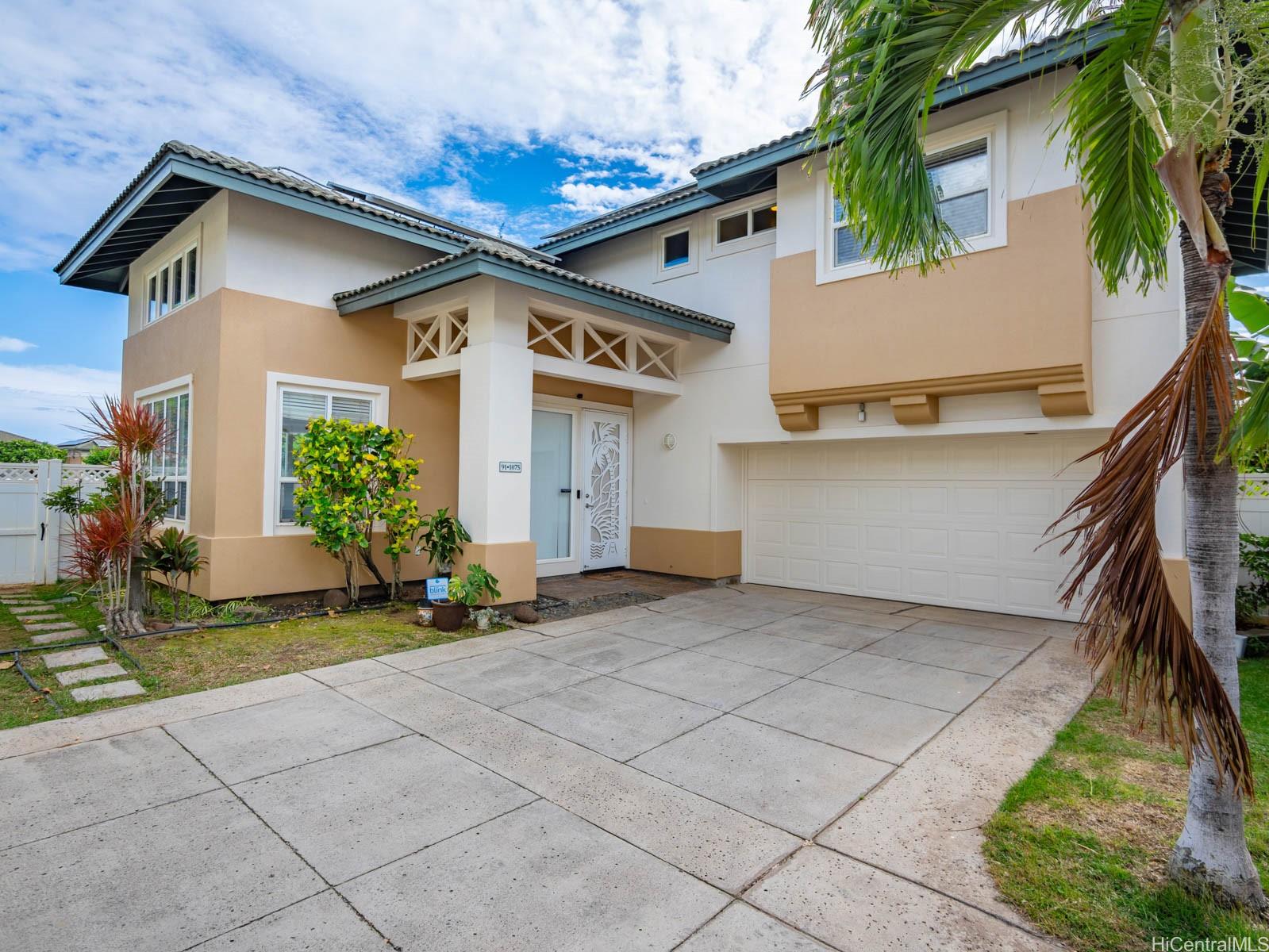 New price improvement! Priced to sell! The seller is offering a ONE-YEAR HOME WARRANTY for added buyer peace of mind. Indulge in Kapolei Luxury Living! This meticulously upgraded 4-bedroom, 2.5-bathroom single-family home features a stunning remodeled kitchen (high-end appliances!), a grand living room with high ceilings, and brand new flooring throughout. Enjoy the ease of a 2-car garage + 2-car pad, energy efficiency with 34 owned PV panels (net metering), fresh paint inside and outside, and perfect climate control with central and split AC. The fenced-in backyard is ideal for gatherings! Situated in The Villages of Kapolei, a master-planned community with exceptional amenities including parks, pools, and schools. Close to golf courses, Ka Makana Ali’i mall, restaurants, and more! Seller is participating in eXp Realty's ExpressOffers platform – qualified buyers may submit cash offers through an