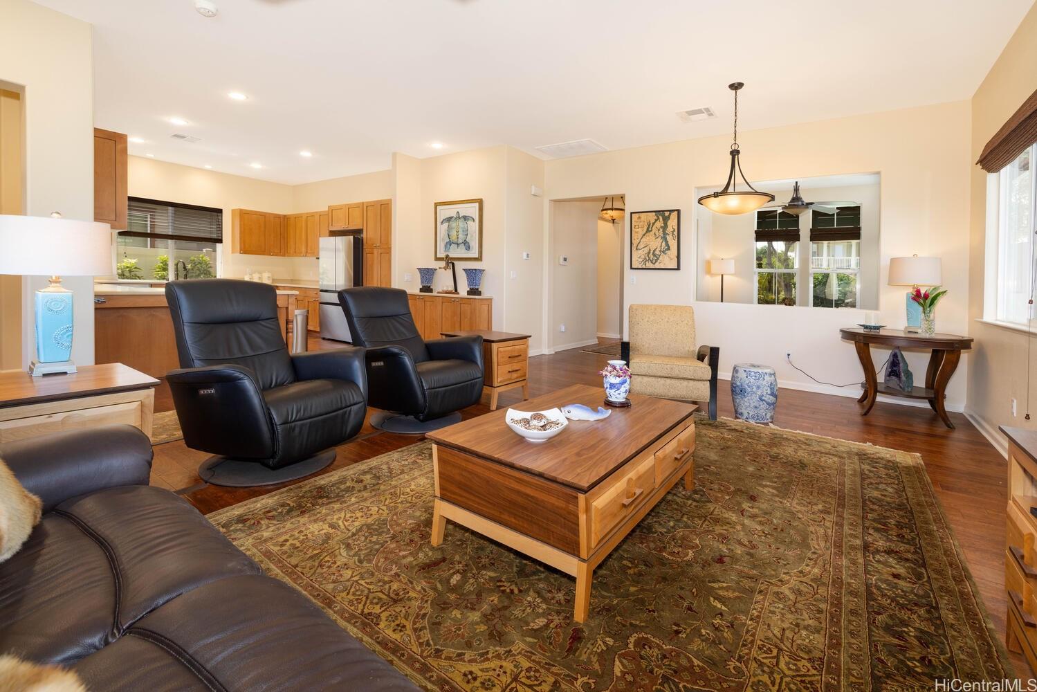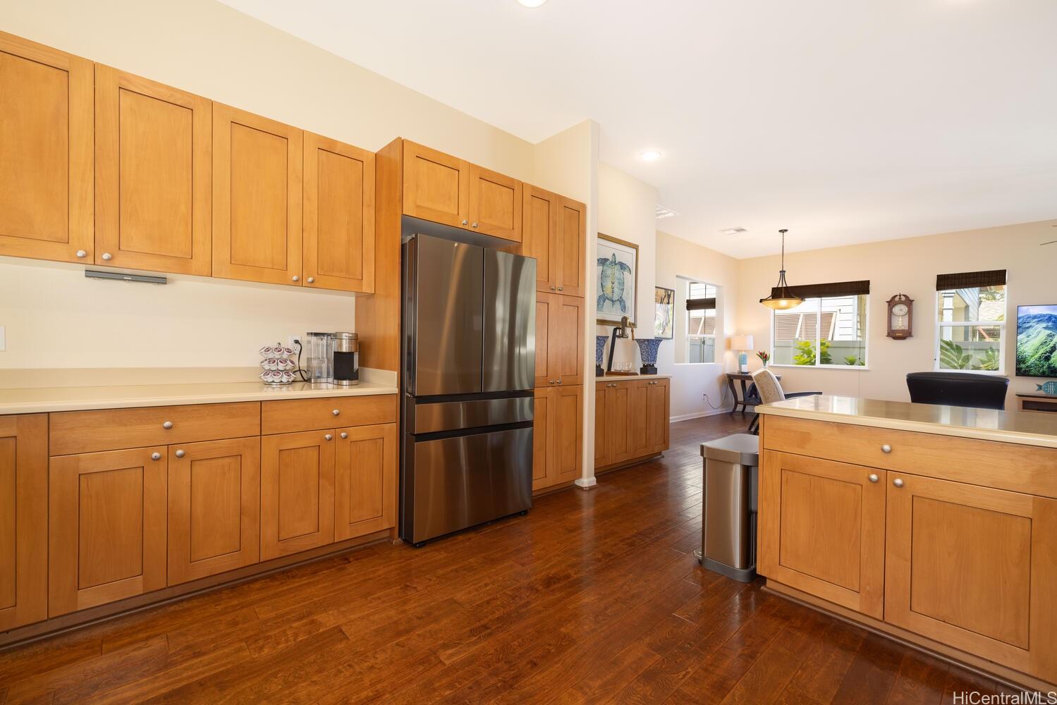 [0] => Rarely Available, Highly sought after, Beautifully upgraded 40:10 single-level model in Ka Makana at Hoakalei. 3-bedroom, 2-bath home with den offers 1,612 sqft of living space and 11-foot ceilings for an open, airy feel. Recent improvements include new carpet throughout (2024), two new 40-gallon water heaters (2024), and a 2025 energy system with 17 solar panels (25-year warranty). Inside, enjoy new Samsung refrigerator, washer/dryer combo, Bosch dishwasher, and a remodeled laundry room (2025). Outdoor living is enhanced with tiled front entry and walkway, extended tiled lanai, and a quiet cul-de-sac location. Security features include an alarm system plus front and back security screen doors. Garage includes built-in storage. This turnkey home offers the best of the Hoakalei lifestyle with access to community amenities and nearby beaches, golf, shopping, and dining.