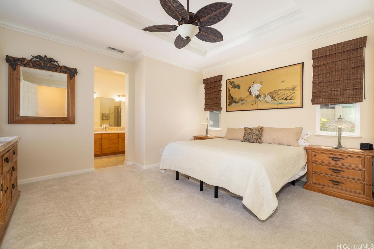 Rarely Available, Highly sought after, Beautifully upgraded 40:10 single-level model in Ka Makana at Hoakalei. 3-bedroom, 2-bath home with den offers 1,612 sqft of living space and 11-foot ceilings for an open, airy feel. Recent improvements include new carpet throughout (2024), two new 40-gallon water heaters (2024), and a 2025 energy system with 17 solar panels (25-year warranty). Inside, enjoy new Samsung refrigerator, washer/dryer combo, Bosch dishwasher, and a remodeled laundry room (2025). Outdoor living is enhanced with tiled front entry and walkway, extended tiled lanai, and a quiet cul-de-sac location. Security features include an alarm system plus front and back security screen doors. Garage includes built-in storage. This turnkey home offers the best of the Hoakalei lifestyle with access to community amenities and nearby beaches, golf, shopping, and dining. Listing by: Island Sun Real Estate Pros (808) 753-3773
