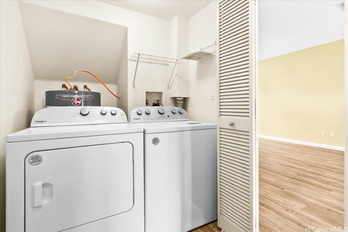 Welcome to this 3-bedroom, 2.5-bath home offering comfort and functionality across 1,196 sq. ft. of living space. Enjoy a bright, open layout with central air conditioning for year-round comfort. The kitchen comes complete with stainless steel appliances, washer, and dryer, while the in-unit laundry adds everyday convenience. The primary suite features a spacious walk-in closet, and two additional bedrooms provide flexibility for family, guests, or a home office. A 2-car garage offers plenty of parking and storage as well as ample guest parking. Move-in ready and located in a desirable Ke Noho Kai Townhomes, this home is waiting for its next owner! Listing by: Keller Williams Honolulu (808) 783-5138