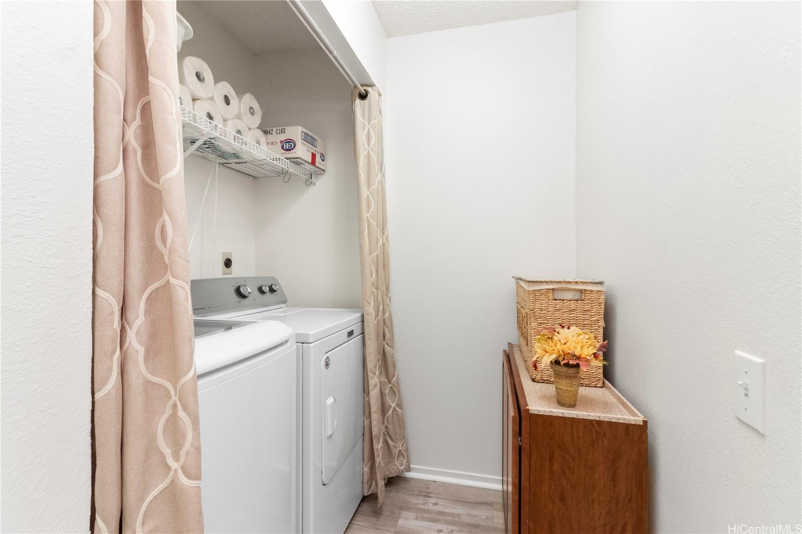 Island living at its finest! This move-in ready gem boasts stylish plantation shutters, an enclosed 2-car garage, and a breezy balcony perfect for soaking in the fresh paradise air. Step into the updated kitchen and spacious living area with soaring ceilings and sun-filled windows. Enjoy resort-style amenities including a sparkling pool, BBQ area, and more — all within a gated community for peace of mind and privacy. Listing by: Coldwell Banker Realty (808) 676-7200