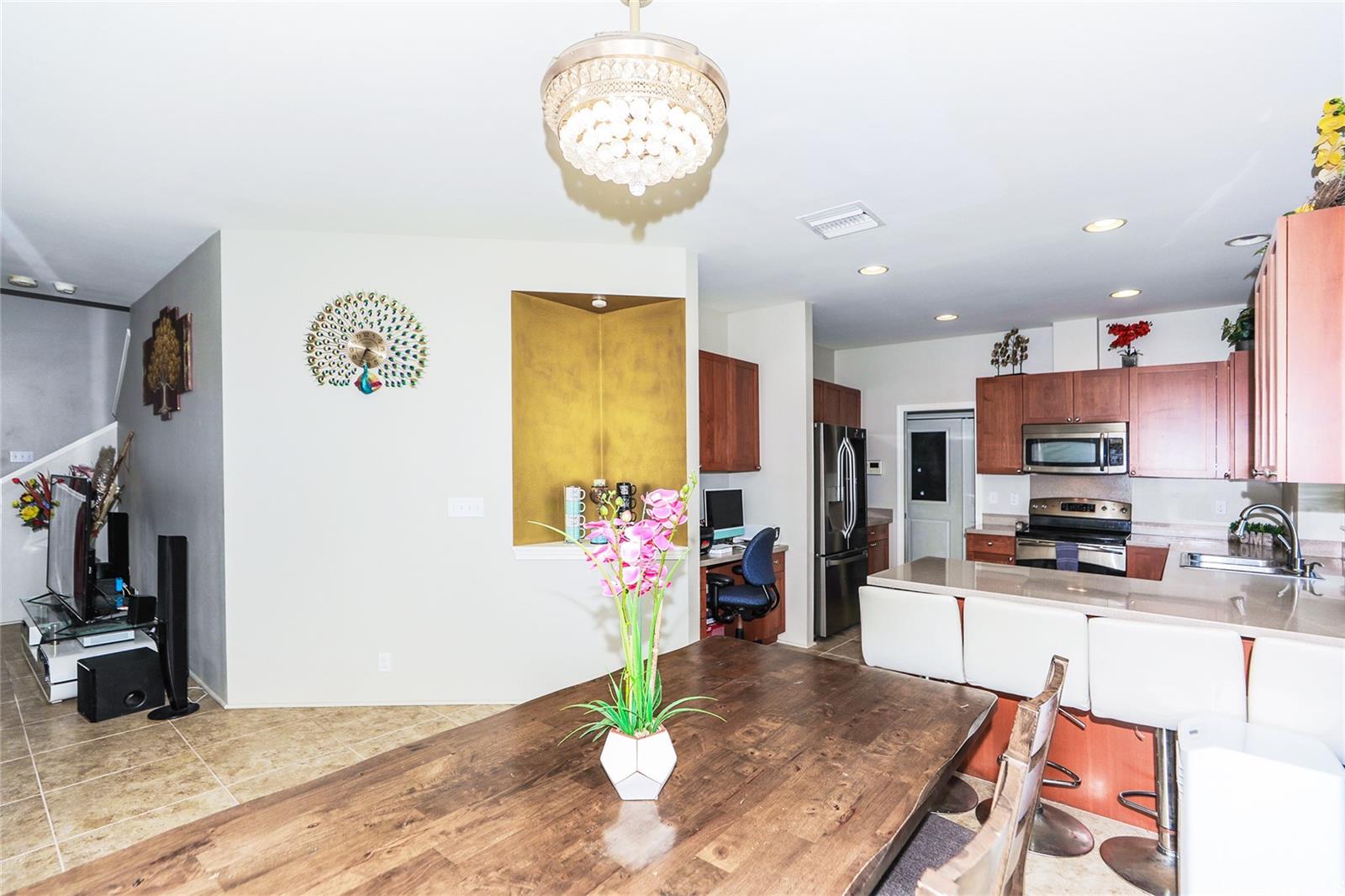 string(458) "$20,000 IN SELLER CREDITS TO BUYER!! Welcome to the desirable community of Latitudes in a great location across from the Laulani Shopping Center! Ease and convenience to Safeway, Starbucks, City Mill, Petco and more. Low HOA's of $50/mos for this single family home with a 2 car garage, driveway and street parking. Fenced in back yard with covered lanai and rockwall fenceline. Laundry room and pantry space off the kitchen with all 3 bedrooms upstairs."