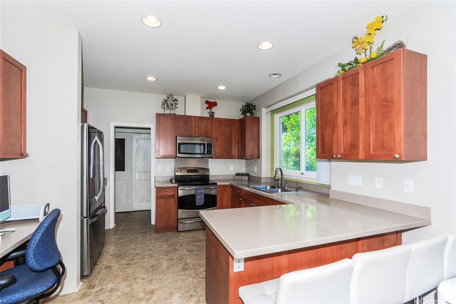 $20,000 IN SELLER CREDITS TO BUYER!! Welcome to the desirable community of Latitudes in a great location across from the Laulani Shopping Center! Ease and convenience to Safeway, Starbucks, City Mill, Petco and more. Low HOA's of $50/mos for this single family home with a 2 car garage, driveway and street parking. Fenced in back yard with covered lanai and rockwall fenceline. Laundry room and pantry space off the kitchen with all 3 bedrooms upstairs. Listing by: Century 21 Island Homes (808) 292-5722