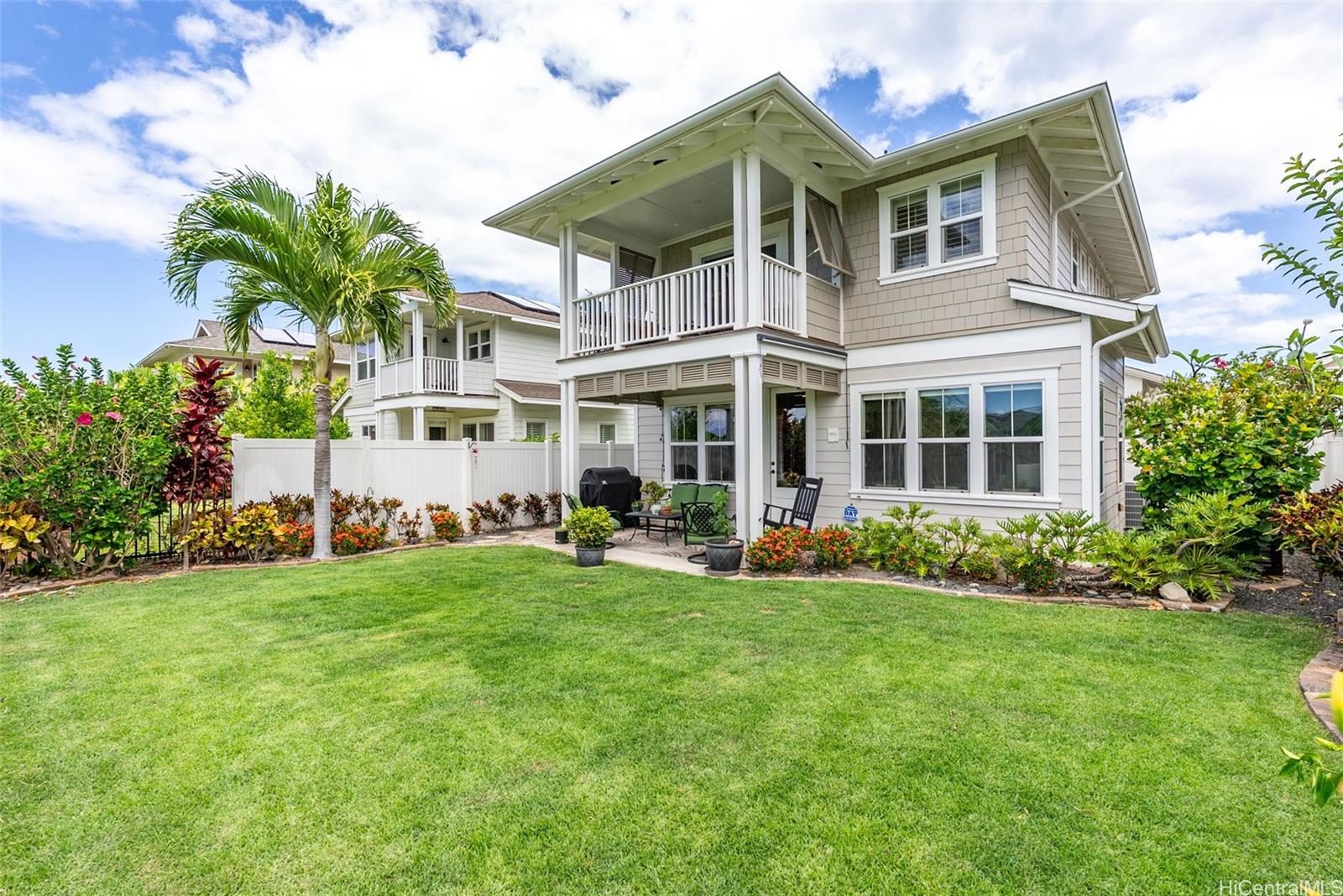 Hoakalei Golf course frontage home with stunning panoramic views & just minutes to a sandy Hawaiian beach! Being located at the end of a cul-de-sac next to conservation land, you can enjoy amazing sunsets from your primary bedroom's covered lanai! Features an open concept living space with one bedroom and full bathroom conveniently located on the main floor, owned PV panels with Tesla batteries, central AC, Kitchen Aid appliances, ceramic Italian tiles, plantation shutters, hardwood floors, and newly installed rear surround sound speakers. Enjoy your access to the Wai Kai Lagoon with restaurants, shopping, & live music, and front row seats to the PGA & LPGA Tours! Amenities included: Resort-like community pool w/hot tub, grills & entertainment areas. HOA includes access to the private Wai Kai Lagoon, beach cabanas, high-speed internet, phone & HD cable. Listing by: REMAX Hawaii (808) 561-7841