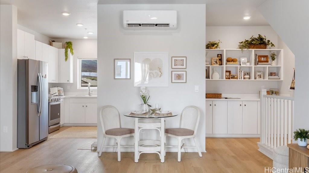This three story condominium FLEX® floorplan has 3 bedrooms and 3.5 bathrooms and consists of 1,497 square feet of net living area. When you step into this home, you will be greeted by a versatile space that can be used as a live/work area designed for your entrepreneurial needs, or a bedroom designed as a ground level ensuite, offering a bathroom with a sink and combination tub and shower, as well as a walk-in closet. The separate entry to the home greets you to a staircase leading you into the living and dining area which flows seamlessly into the kitchen, featuring stainless steel appliances and white soft-close cabinets. On the third floor, you'll find the primary bedroom with a walk-in closet and ensuite bathroom with a double vanity and separate walk-in shower and water closet. Down the hall is the secondary bedroom with a generously sized closet and mirrored sliding doors. This bedroom has an additional ensuite bathroom that includes a combination bathtub and shower. Attached to this home is a single-car garage. Split air conditioning and modern appliances including a range/oven, micro-hood, dishwasher, refrigerator, and washer/dryer allow for ease of living. Listing by: D R Horton Hawaii, LLC (808) 521-5661
