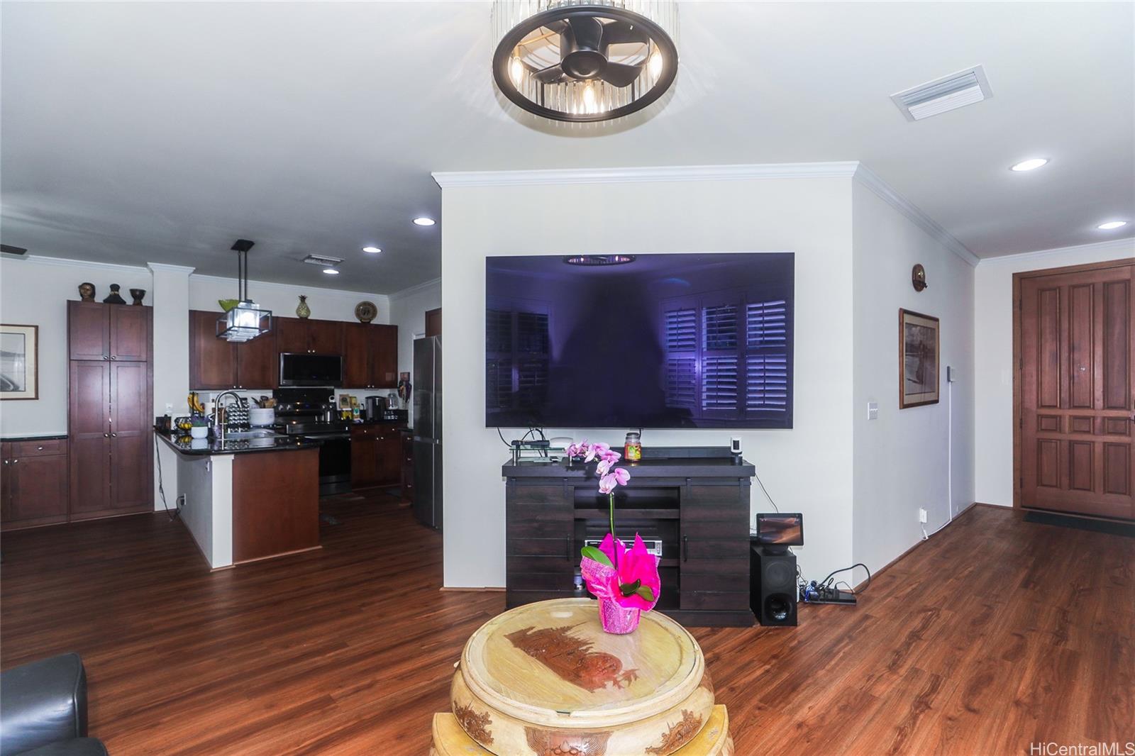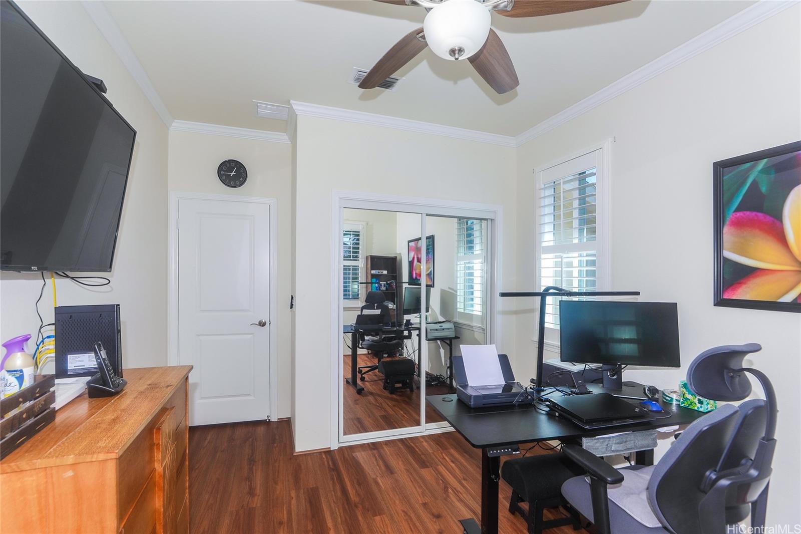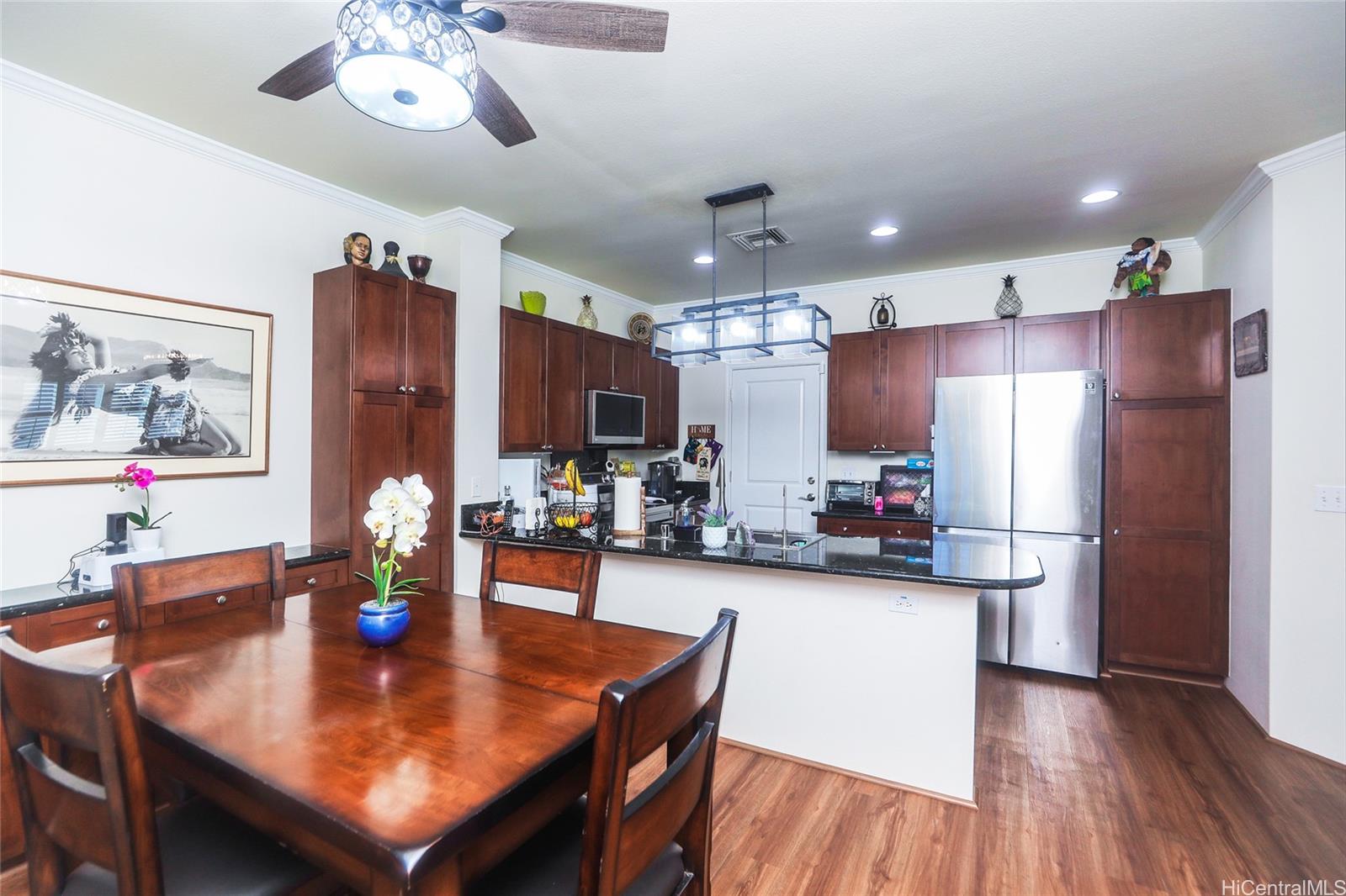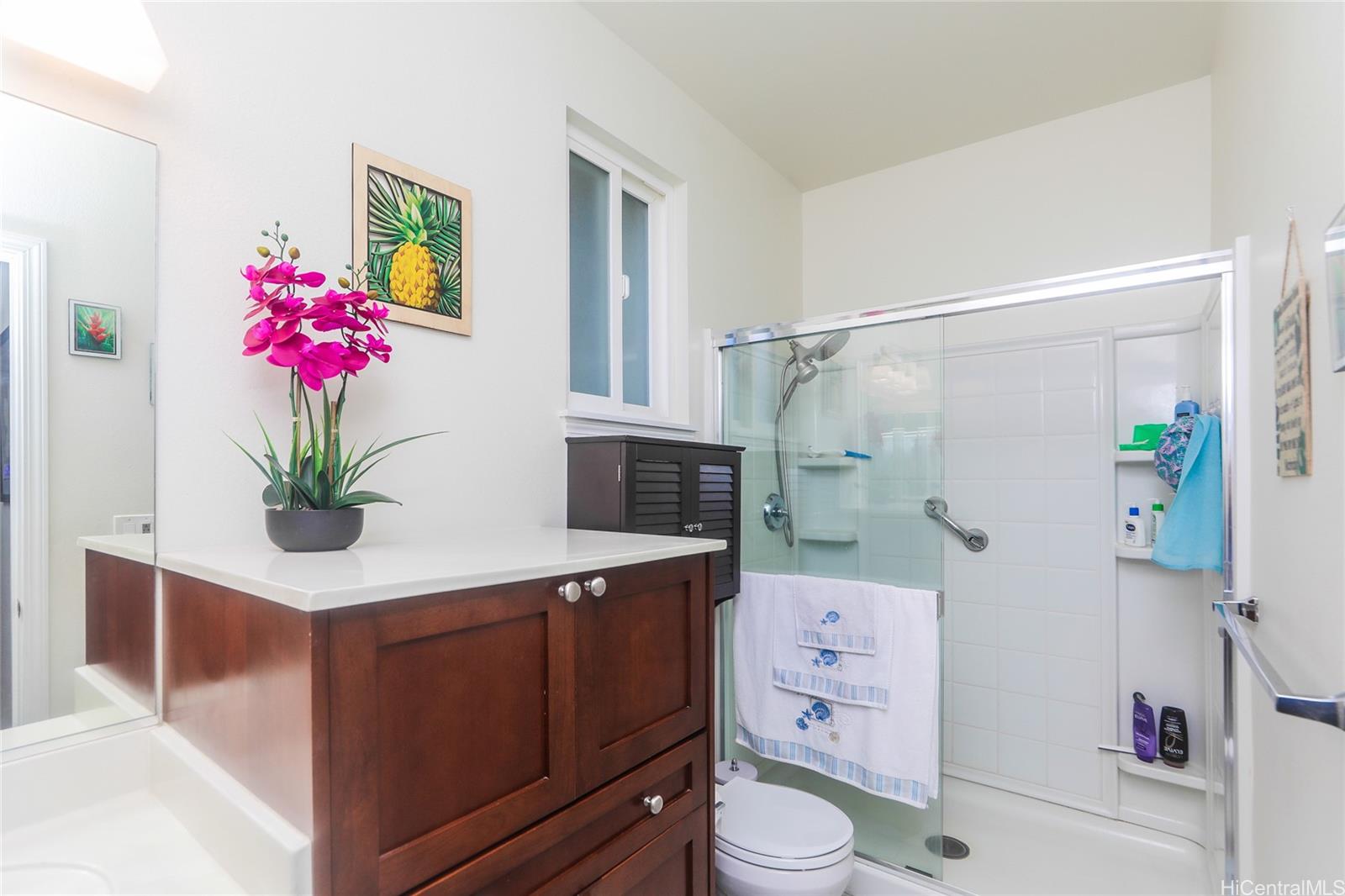 Gentry Latitudes community! Rarely available 4 bedroom, 3 bath single level home with 1 Bedroom and Full bath on first floor. 19 Owned PV panels (Net metering.) When you enter the home, you will be impressed with the open floor plan and one of a kind upgraded personal touches: Crown molding, plantation shutters, high end laminate wood flooring throughout, Central A/C replaced in 2019 with UV return vent to help kill germs. Upgraded ceiling fans and kitchen chandelier. Stunning main bathroom walk in shower. Keypad front door lock, Ring cameras and ADT Security system: Cameras, window and door sensors. Very quiet and private landscaped yard is ideal for BBQs, family gatherings or just enjoying some quiet time. Fantastic shopping and entertainment only minutes away. Garage features a Split A/C and Wi-Fi remote opener. **Seller is offering a $3,000 credit to the buyer for closing costs** Listing by: Help-U-Sell Honolulu Prop. (808) 255-3220