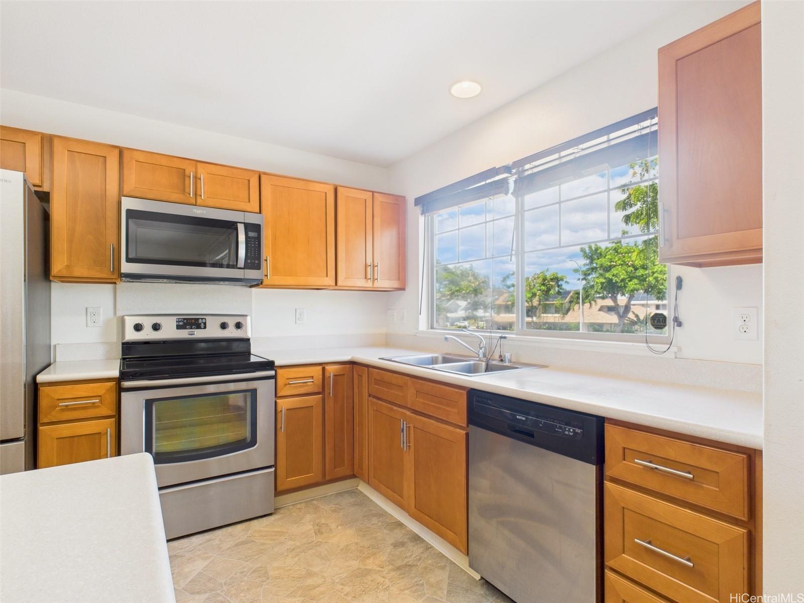 Under $600,000 in Kapolei! This spacious 3-bedroom, 2 full-bath Nohona III townhome is the opportunity you’ve been waiting for. This unit has 11 OWNED SOLAR PANELS which is hardly seen today! Featuring an open-concept kitchen with stainless steel appliances, beautiful cabinetry, and a primary bathroom complete with a double-sink vanity, this home is filled with potential. Window A/C units in the bedrooms and living area keep you comfortable year-round, while an in-unit washer and dryer adds everyday convenience. Parking is a breeze with your own one-car garage plus an additional driveway stall. The building exterior was recently painted, and with no neighbors behind you, you’ll enjoy added privacy for relaxing or entertaining. Conveniently located near golf courses, shopping centers, schools, restaurants, and all the best of the Second City. This home is ready for your personal touches, make it your own and create the space you’ve been dreaming of. At this price point, opportunities like this rarely come up in Kapolei, don’t wait, make it yours today! No showings until the first Open House: Saturday & Sunday (9/20 & 9/21) from 2–5 PM. Listing by: eXp Realty (808) 725-2794
