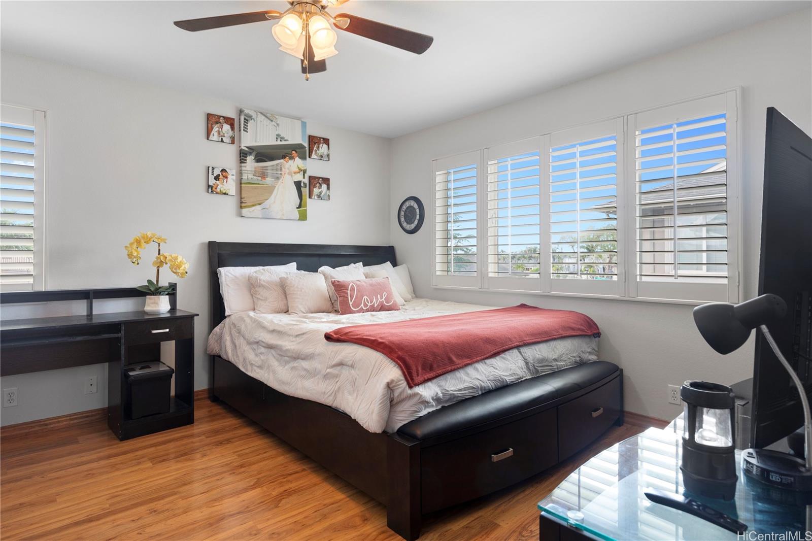Beautiful corner home in the desirable Montecito/Tuscany community. This well-maintained residence features stainless steel appliances, oak kitchen cabinets, and durable laminate flooring throughout. Stay comfortable year-round with central A/C, smart ECHO climate control, and a built-in security system. Energy efficient upgrades include OWNED Photovoltaic (PV) panels, An Electric Vehicle charging system and a Solar water heater - helping to reduce electric costs. Elegant wood shutters provide both privacy and style. The spacious primary suite includes an ensuite bathroom and a walk-in closet. The property offers an enclosed 2-car garage, driveway and an additional parking stall. A total 4 parking spaces! Ideally located directly across from the community pool, BBQ area, and cabana - perfect for relaxation and entertaining. Ample guest and street parking. Conveniently close to parks, schools, Laulani Shopping Center, restaurants, and more. Listing by: Coldwell Banker Realty (808) 676-7200