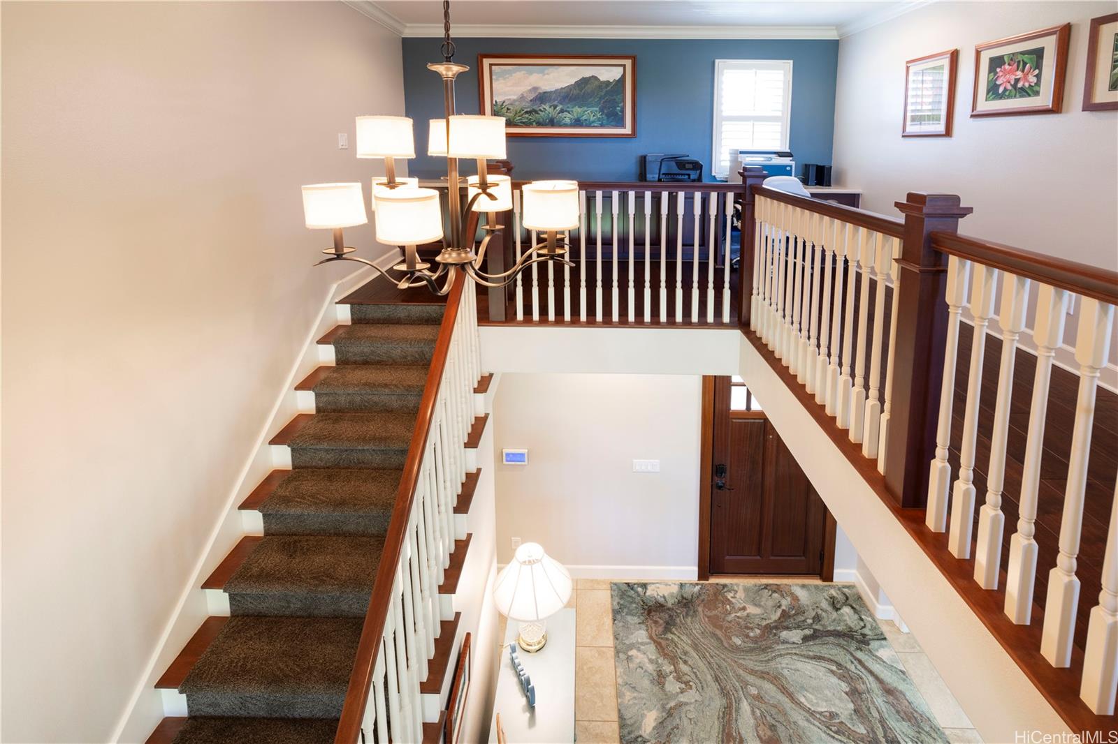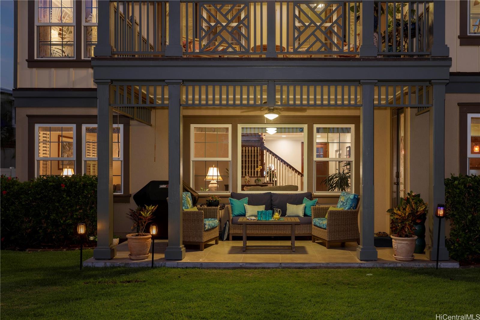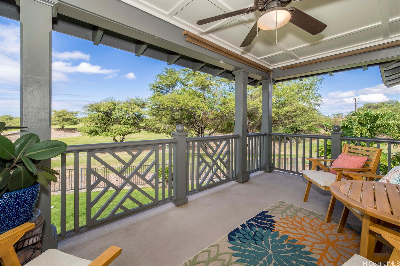[0] => Fronting the Hoakalei Golf Course, this meticulous 4-bedroom home is refined island living! From the welcoming foyer, the French doors open to a bonus room—ideal as a private office, reading retreat, or den—along with a main-level bedroom & full bathroom, perfect for guests or multi-generational living. The modern kitchen has upgraded cabinetry, stainless steel appliances, granite counters, and a large island with additional seating.