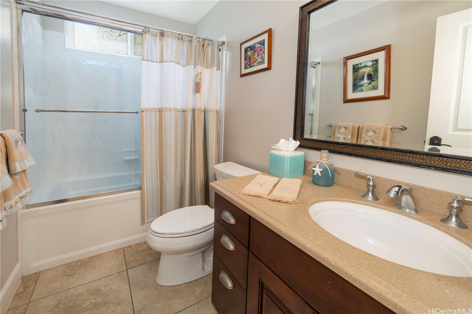 Fronting the Hoakalei Golf Course, this meticulous 4-bedroom home is refined island living! From the welcoming foyer, the French doors open to a bonus room—ideal as a private office, reading retreat, or den—along with a main-level bedroom & full bathroom, perfect for guests or multi-generational living. The modern kitchen has upgraded cabinetry, stainless steel appliances, granite counters, and a large island with additional seating. One of the home’s most captivating features is the expansive yard—a canvas to design a pool, tropical gardens, or an entertainer’s paradise, this oversized outdoor retreat is the ultimate private oasis! Energy efficient w/24-panel owned, net-metered photovoltaic system, 2 solar hot water panels, a whole-home water softening system, and reverse osmosis drinking water as an added bonus. Located in an award winning resort community, residents enjoy HOA amenities including high-speed internet & cable, pool and spa, fitness center, tennis and pickleball courts, a dog park, and 3 playgrounds. Just moments away, you’ll find beaches, shopping, dining, and the best of island living. This is more than a home, it’s a lifestyle with golf course living! Listing by: Century 21 Island Homes (808) 292-5722